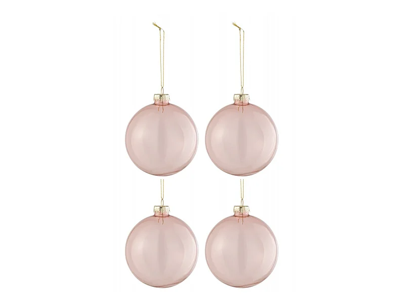 Scatola di 4 palline di Natale in vetro rosa 10.5x10.5x12 cm