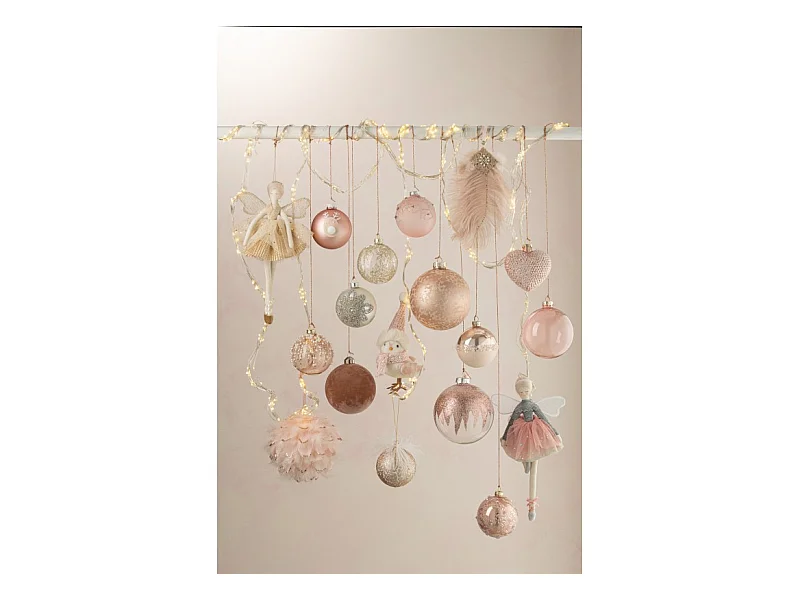 Scatola di 6 palline di Natale in vetro rosa 9.5x8.5x10 cm