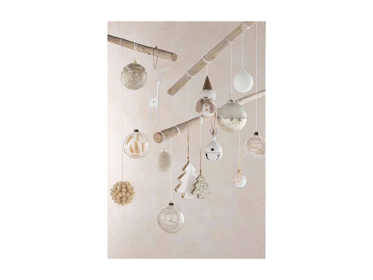 Scatola di 4 palline di Natale in vetro beige 10x10x12 cm
