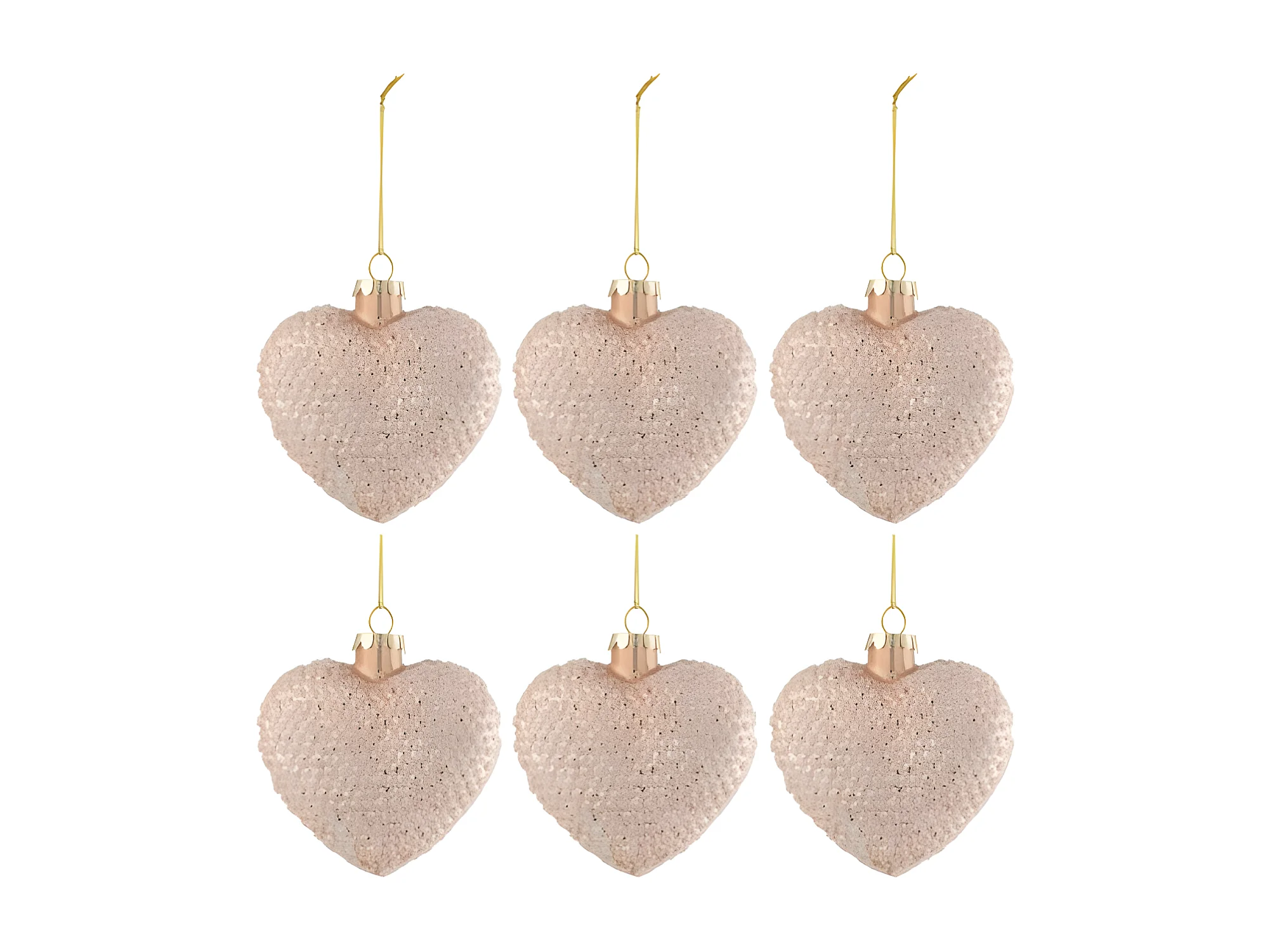 Scatola di 6 cuori in vetro rosa 9,5x4,5x9,5 cm