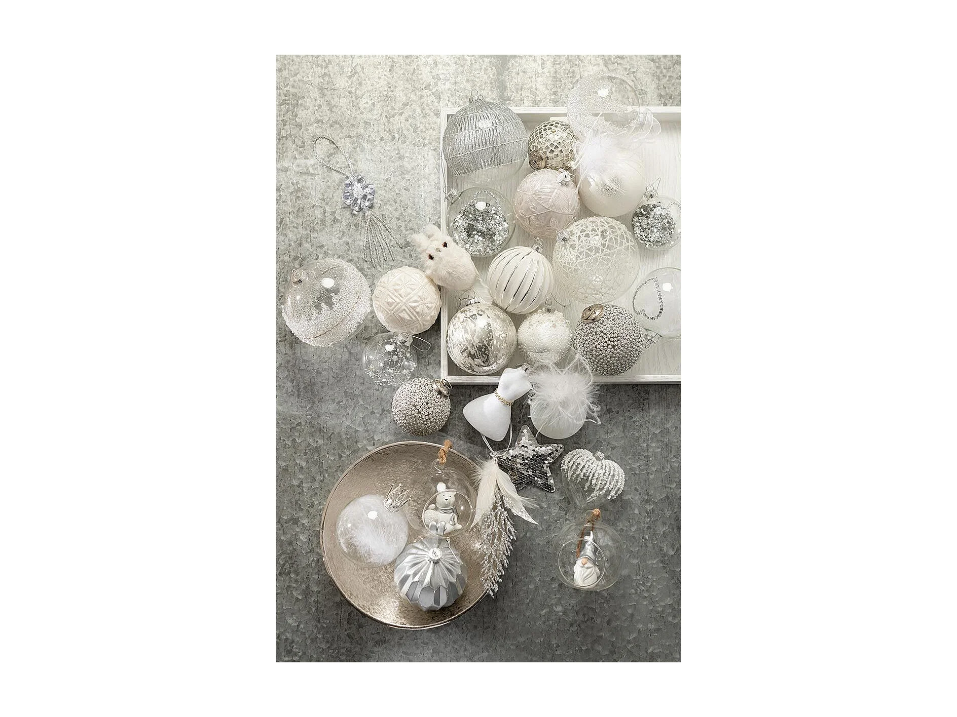 Scatola di 4 palline di Natale in vetro bianco 10x10x10 cm