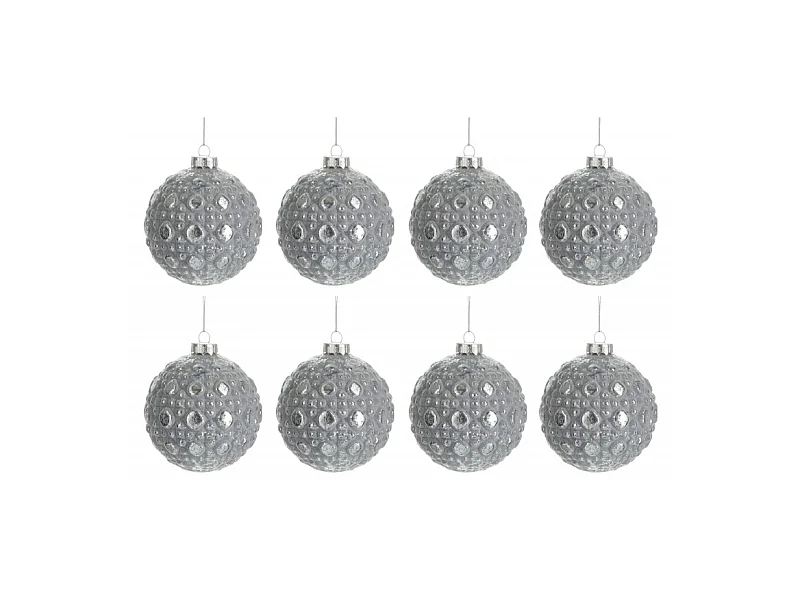 Scatola di 8 palline di Natale in vetro grigio 8x8x8 cm