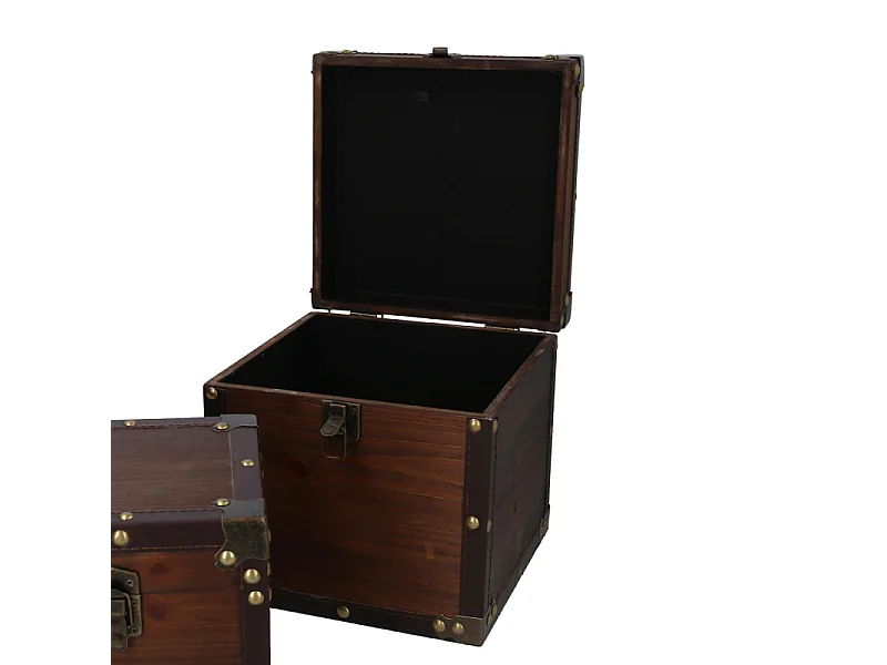 Scatola legno ecopelle 1-3 marrone quadro cm30x30h30