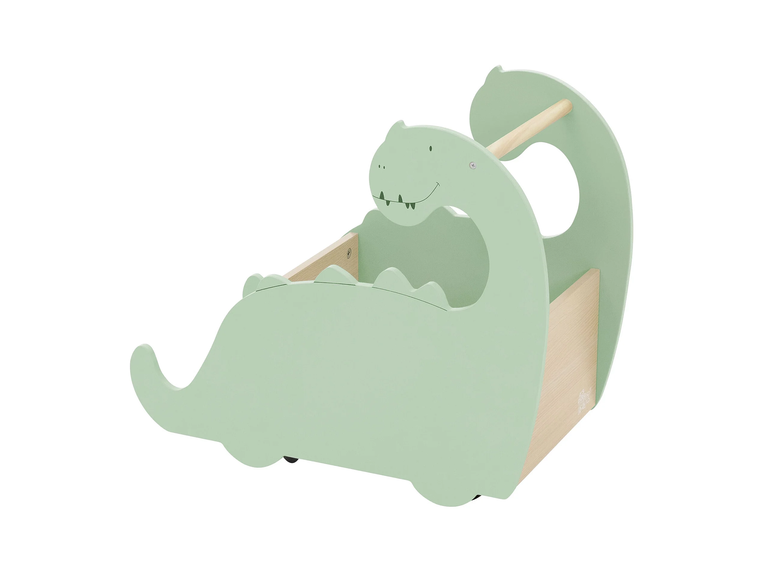 Scatola portagiochi per bambini design dino girello di legno con ruote libreria