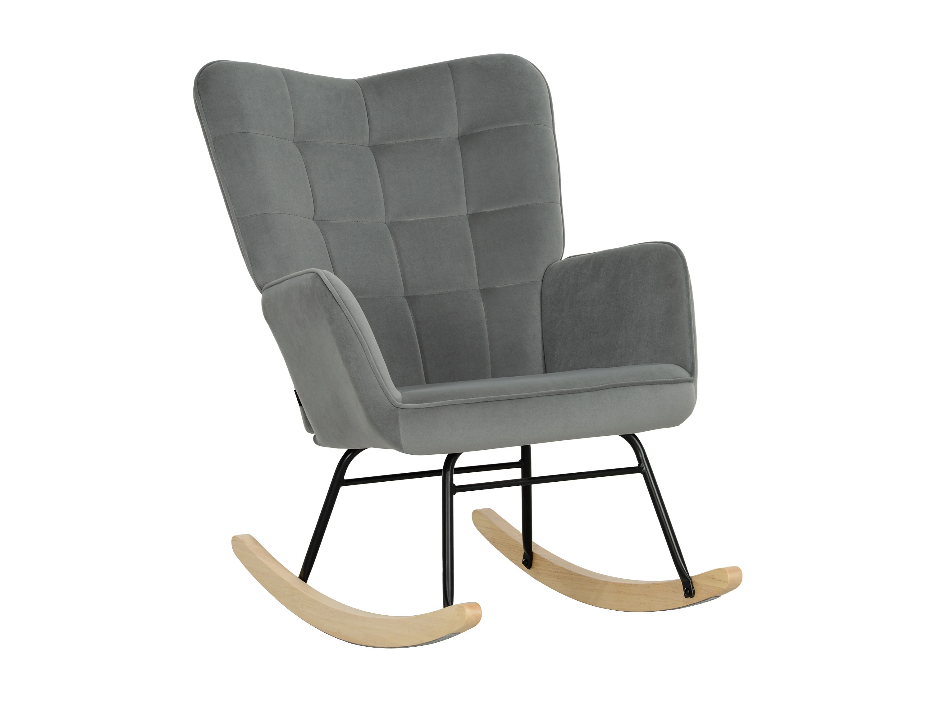 Schaukelstuhl mit Armlehnen, Samtstoff, Holzbeine, hellgrau (71x98x101 cm)