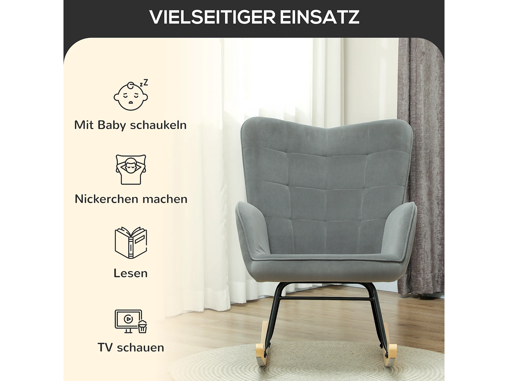 Schaukelstuhl aus Samt, Armlehnen, Beine aus Buchenholz, entspannend, dunkelgrau (98x71x101cm)