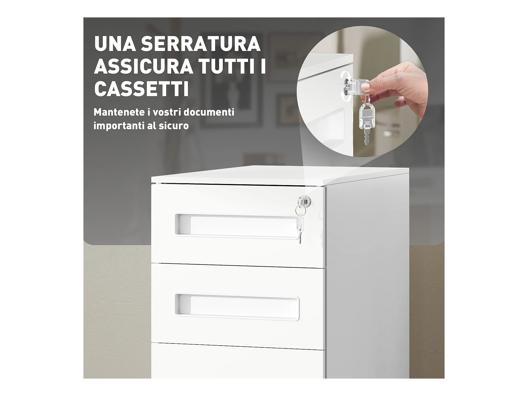 Mobiletto da ufficio a 3 cassetti in acciaio bianco