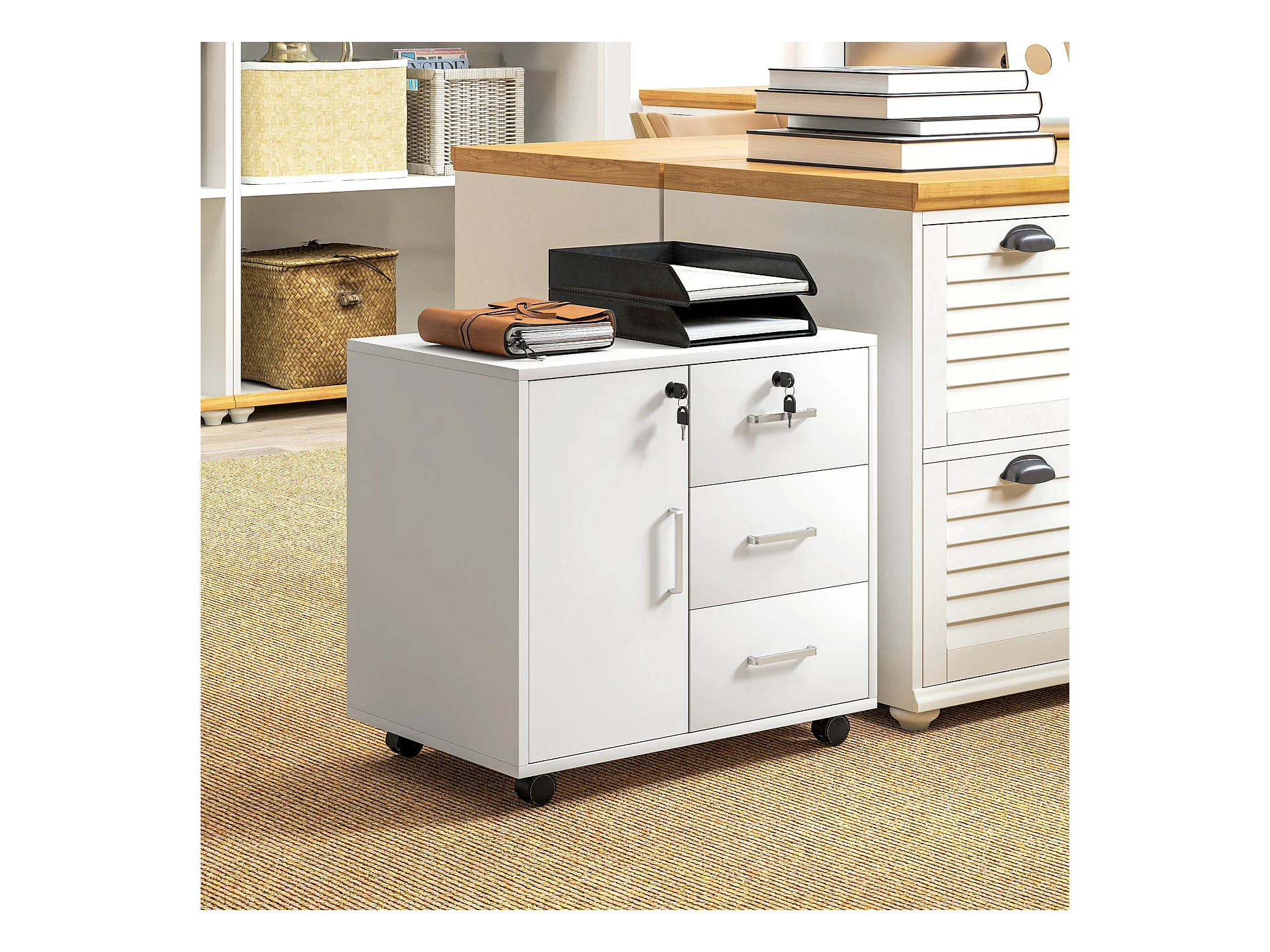 Cassettiera da ufficio con 3 cassetti e serratura in legno bianco