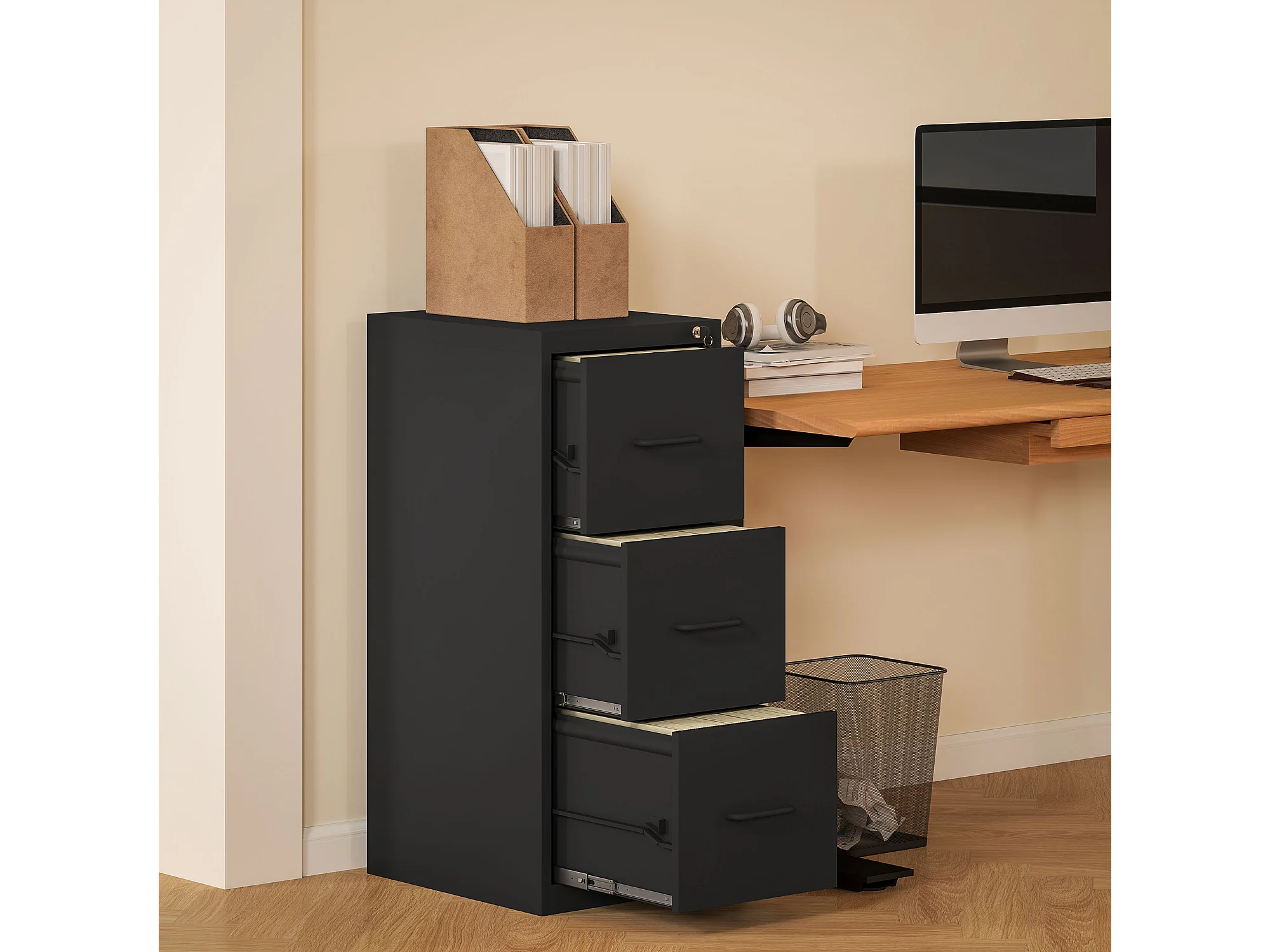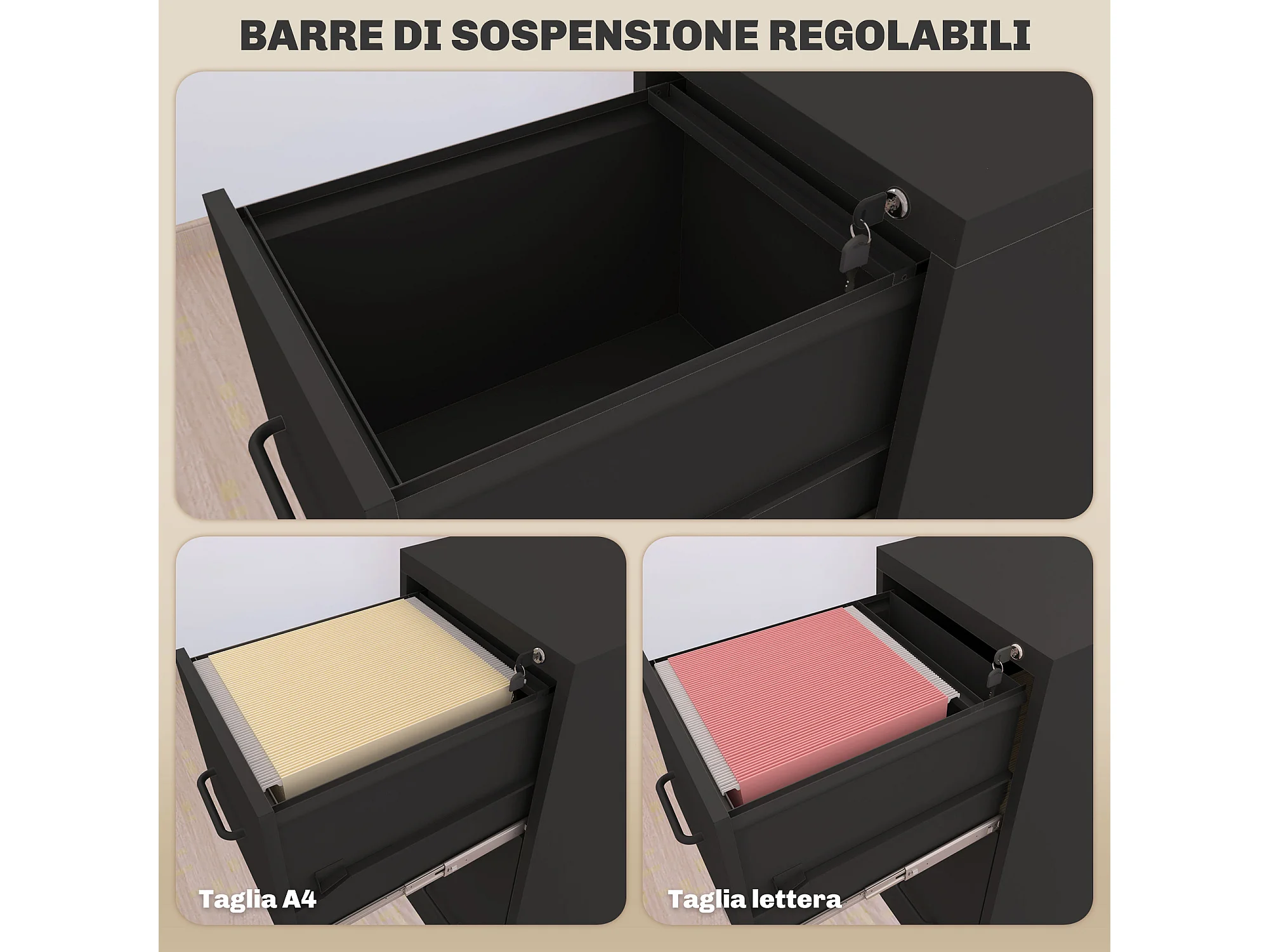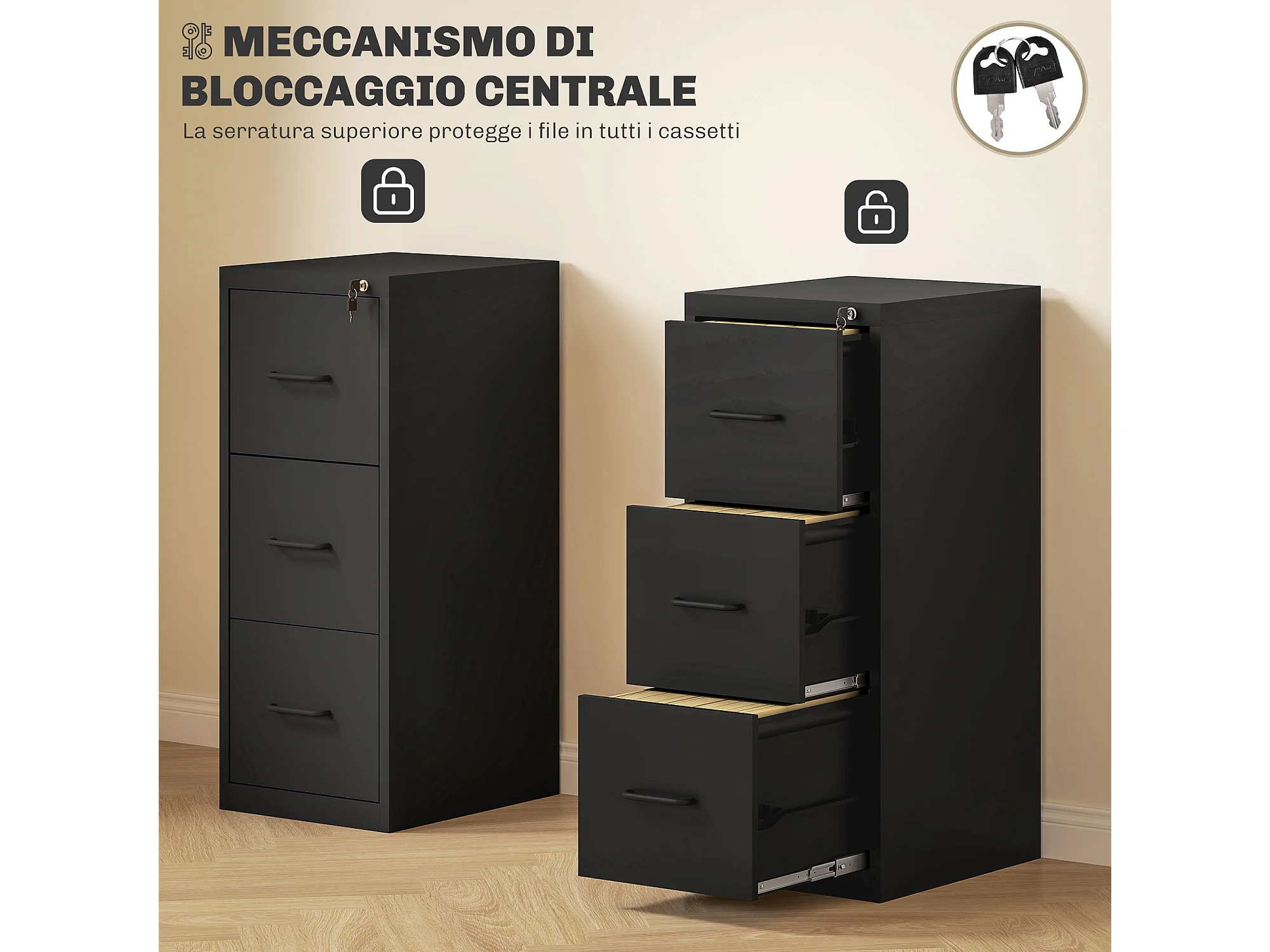 Schedario portadocumenti minimal a 3 cassetti in acciaio nero