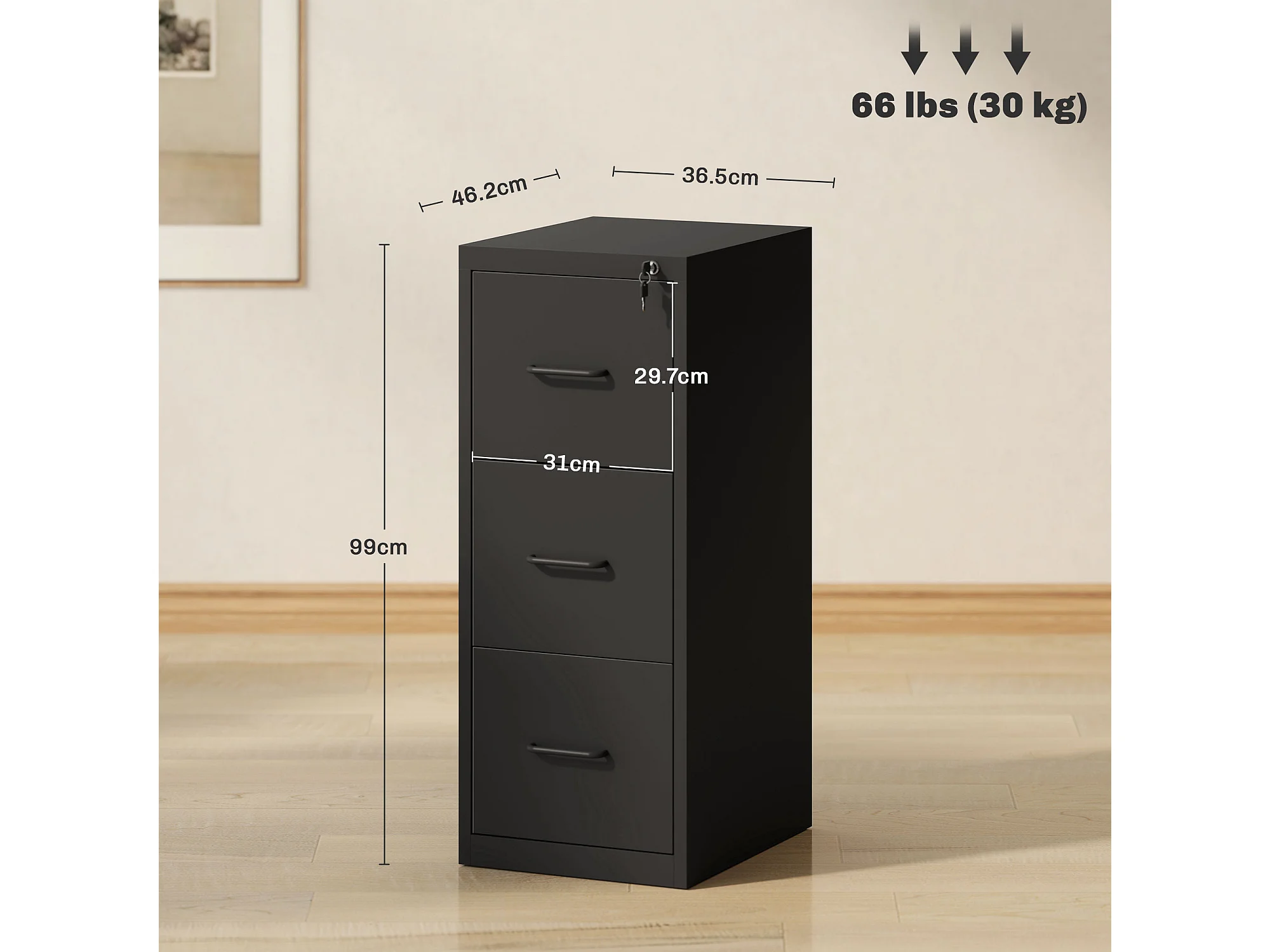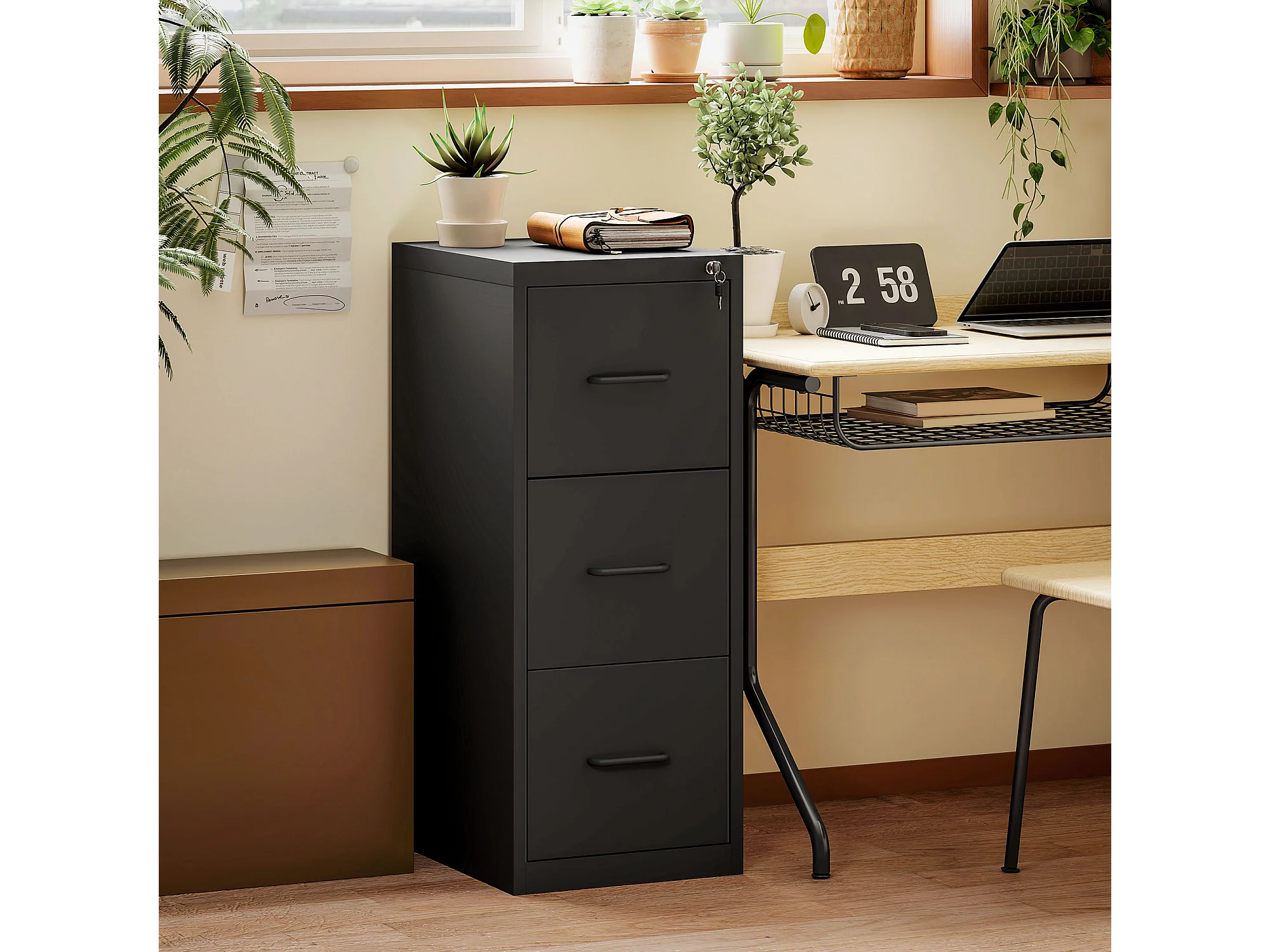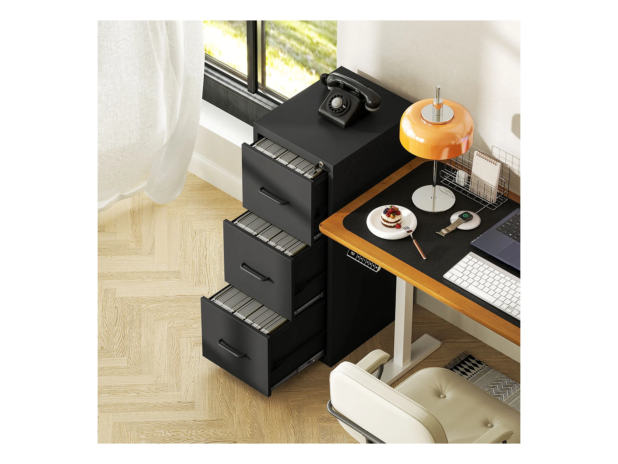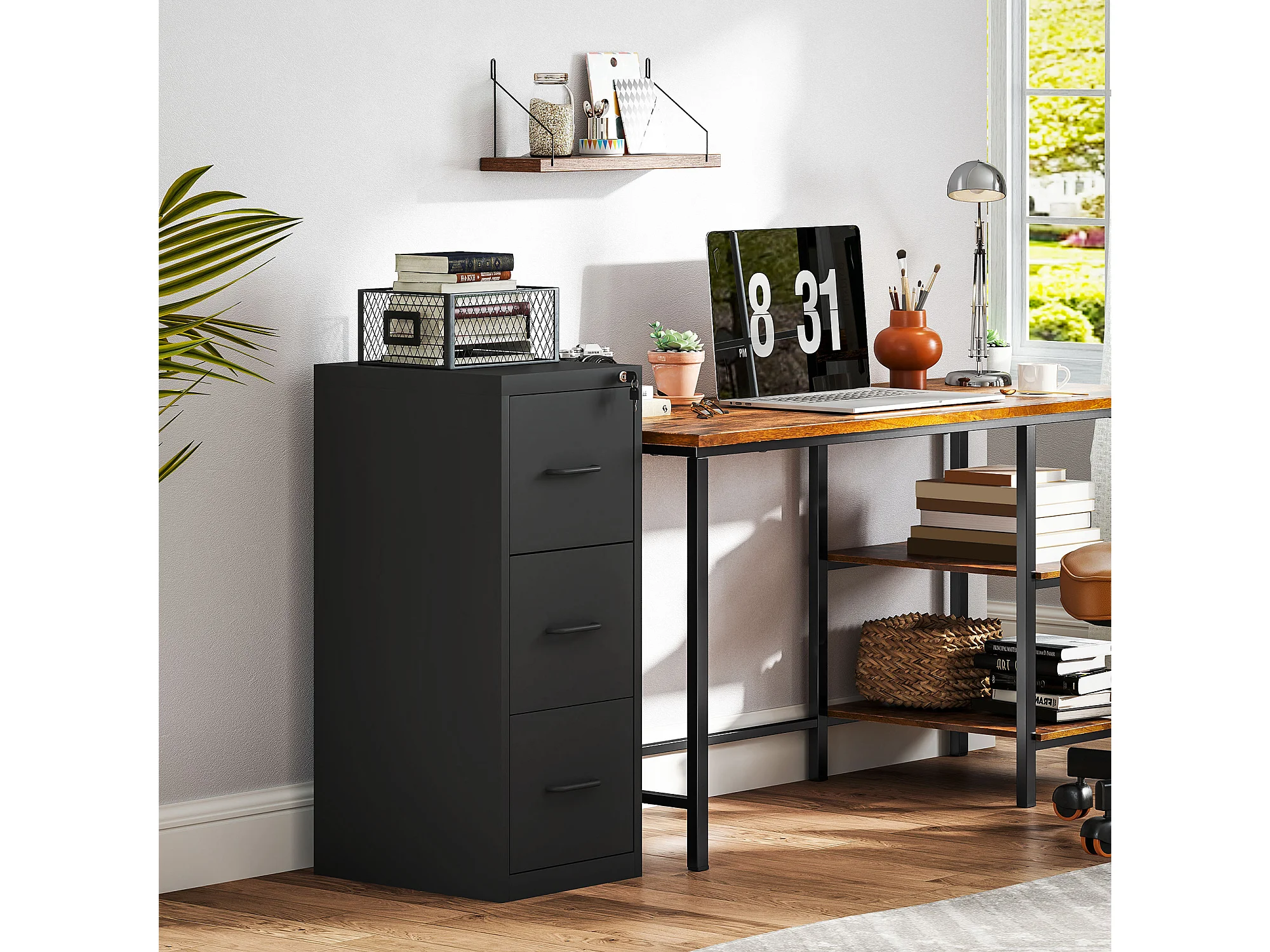 Schedario portadocumenti minimal a 3 cassetti in acciaio nero