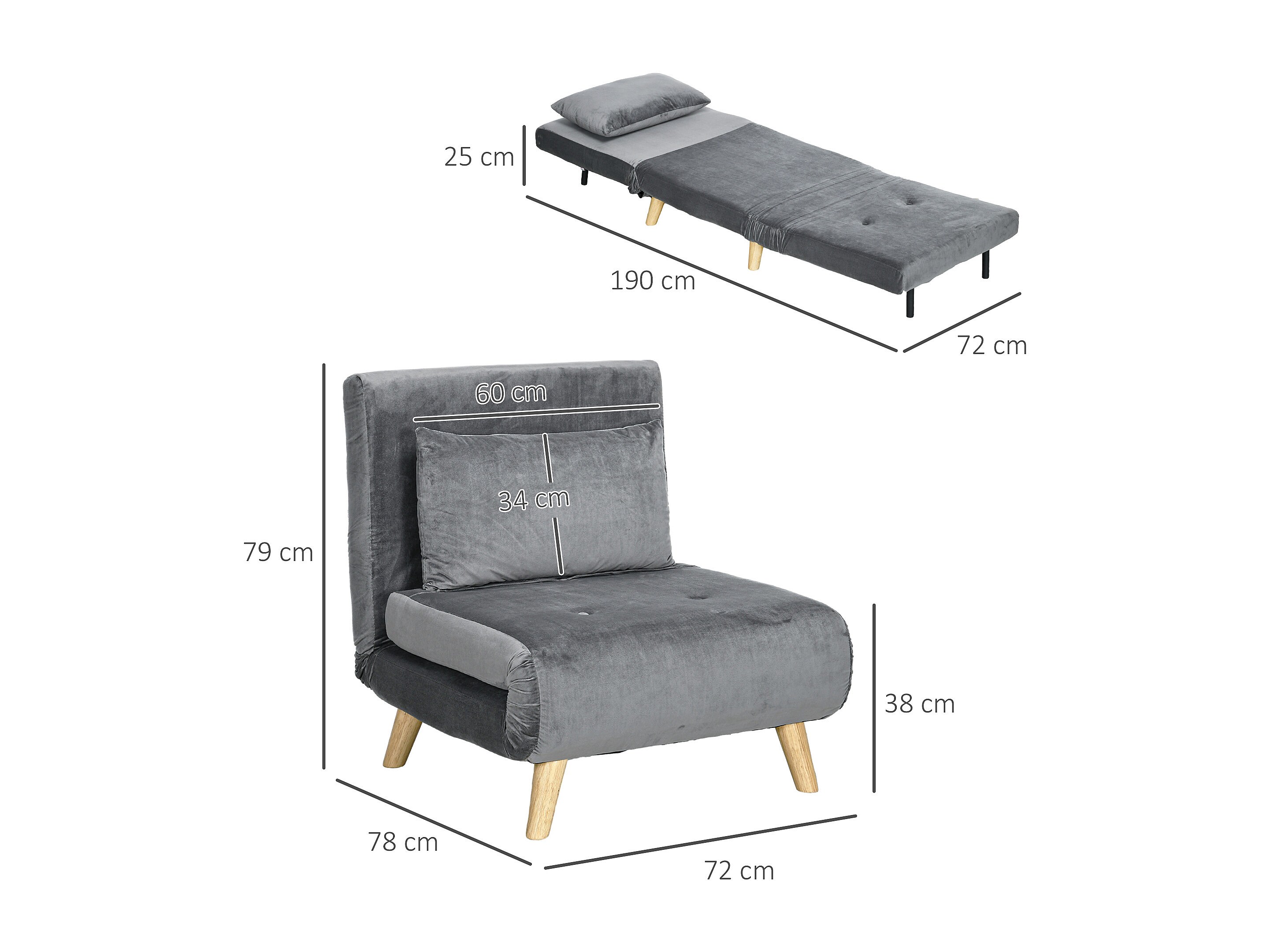 Fauteuil convertibile 3-en-1 tissu lin avec fonction lit salon gris 78x72x83cm