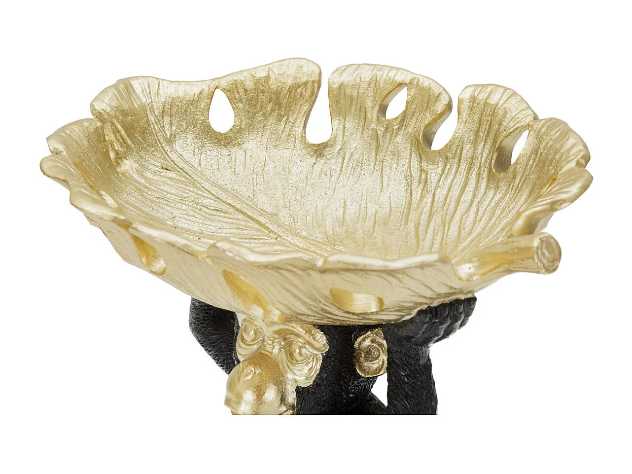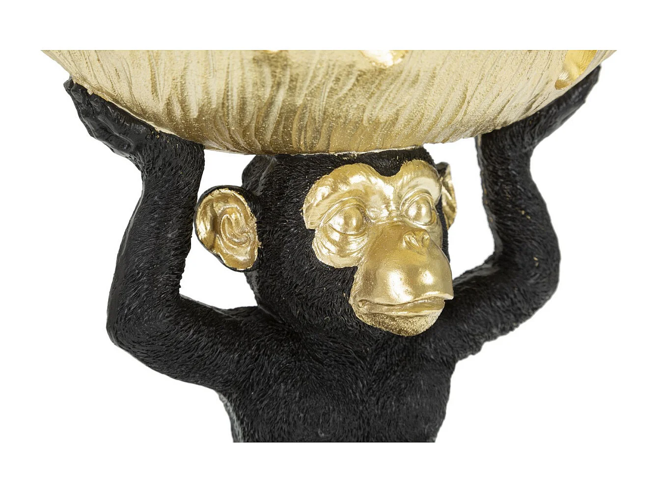 Scimmietta con portaoggetti in resina nera e dorata cm 25,2x21x24