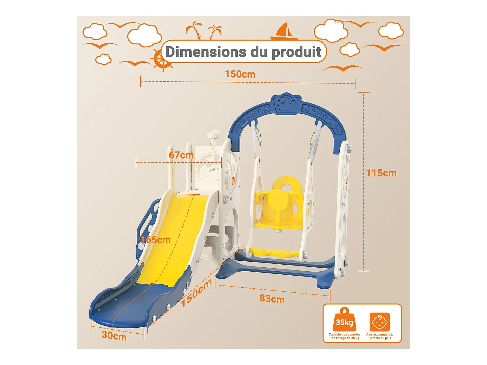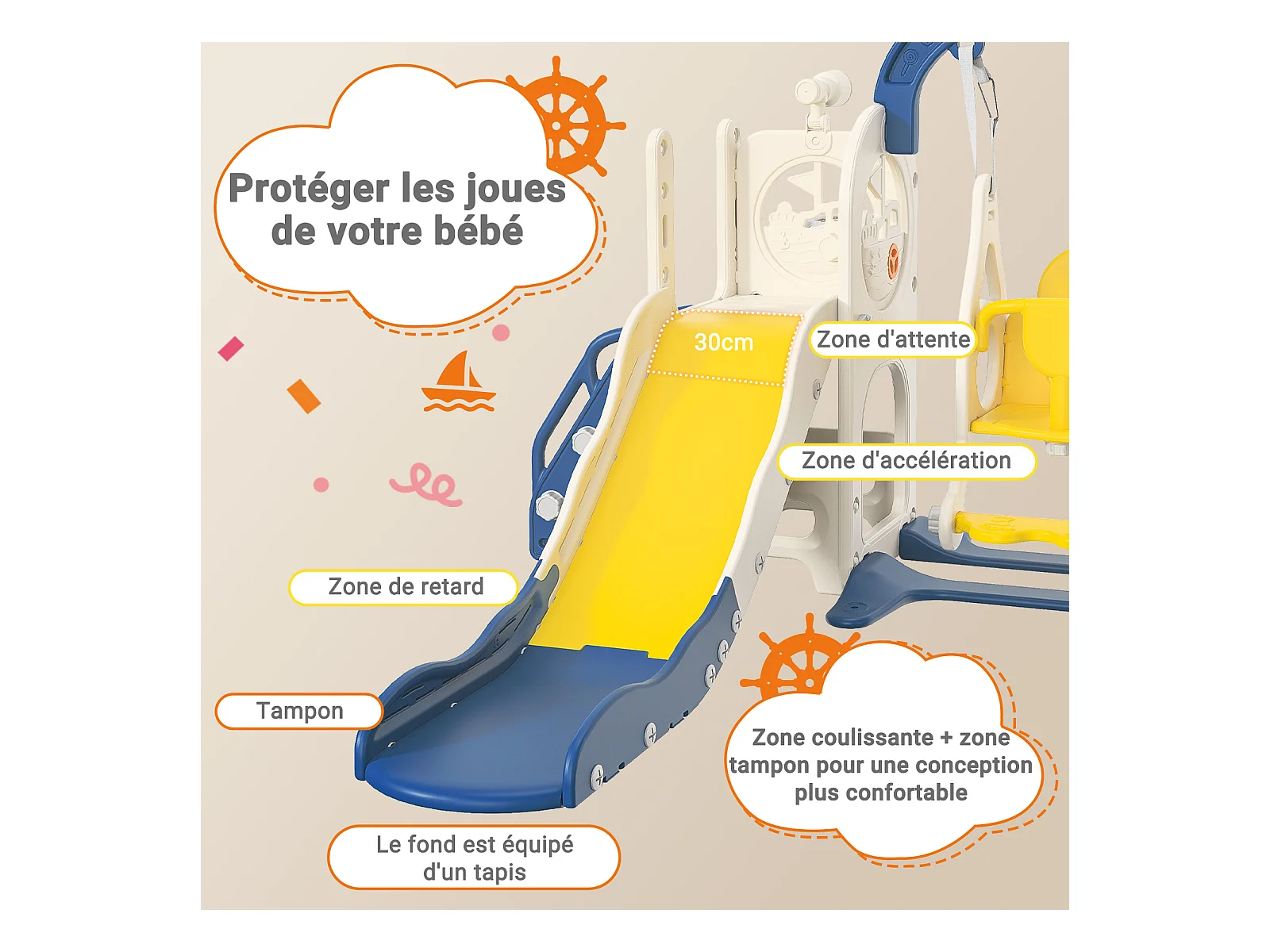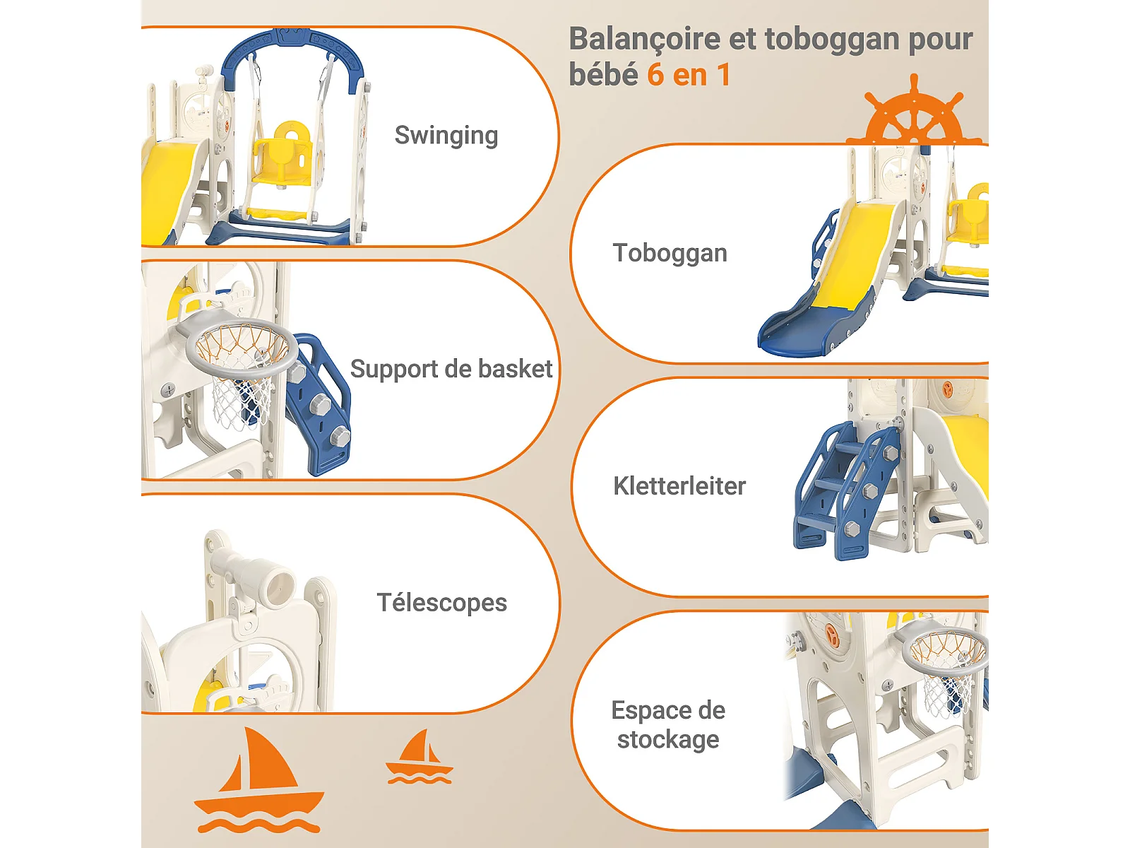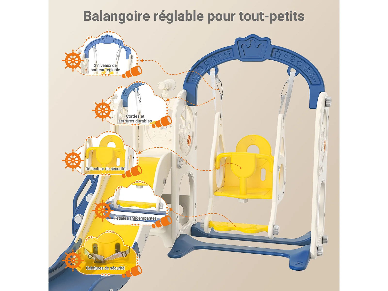Scivolo nave pirata + altalena + struttura a sfera + telescopio blu