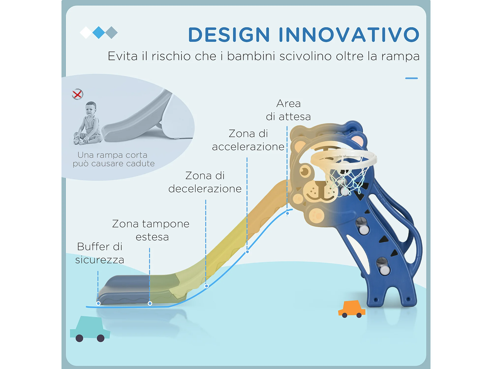 Scivolo per bambini 18+ mesi pieghevole con canestro blu e grigio