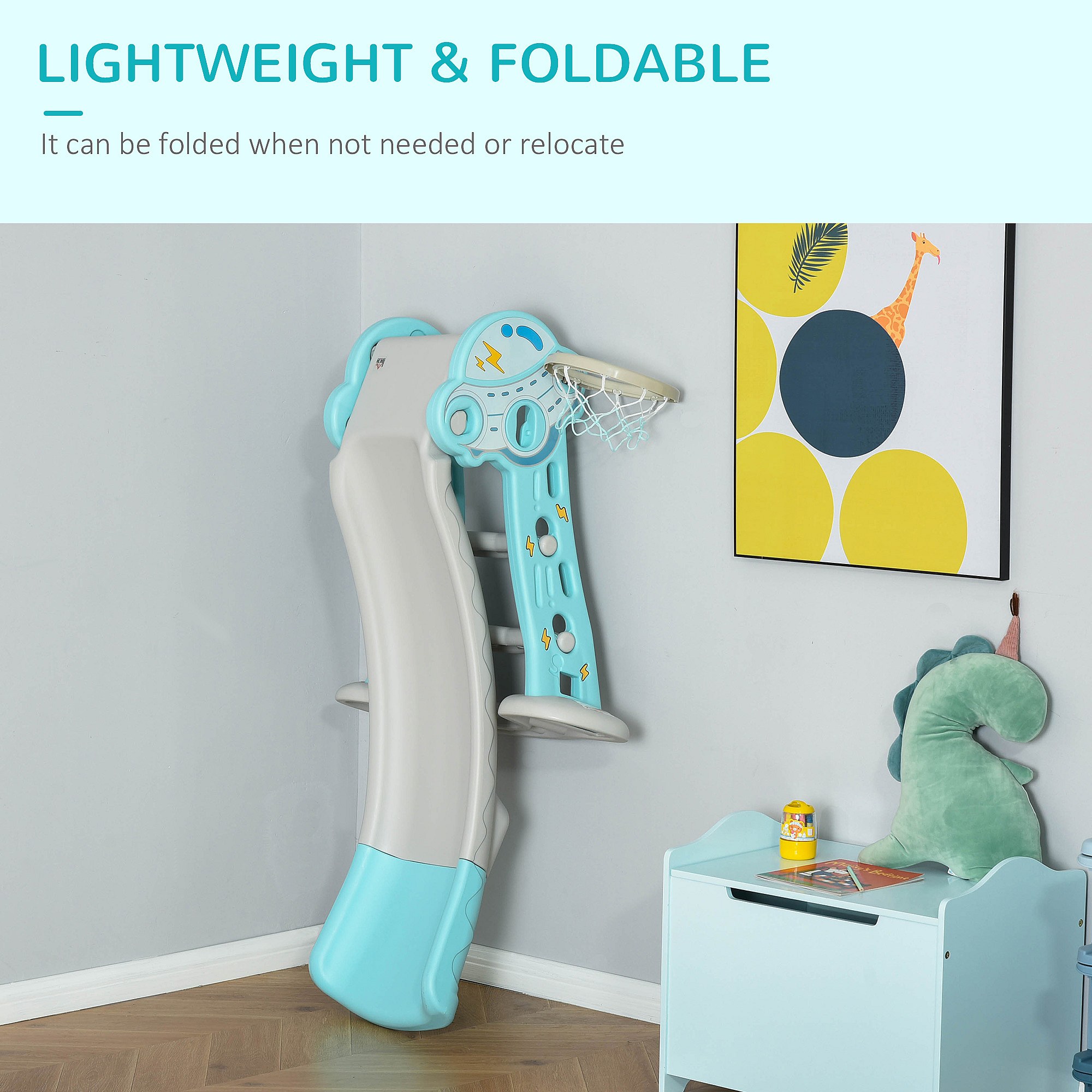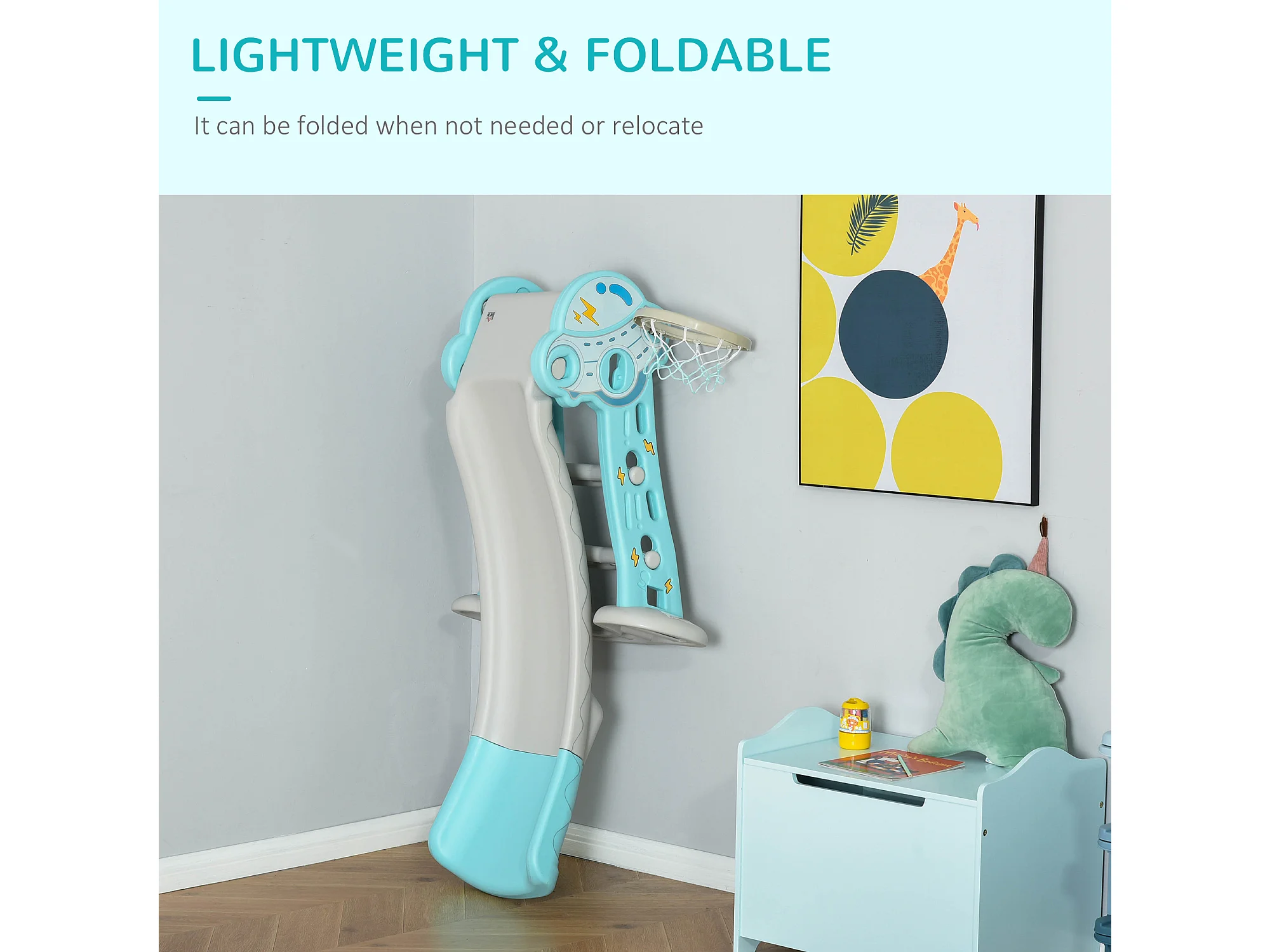 Scivolo per bambini 18+ mesi pieghevole con canestro blu e grigio