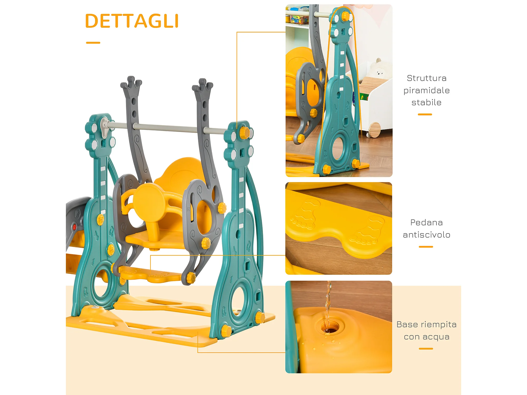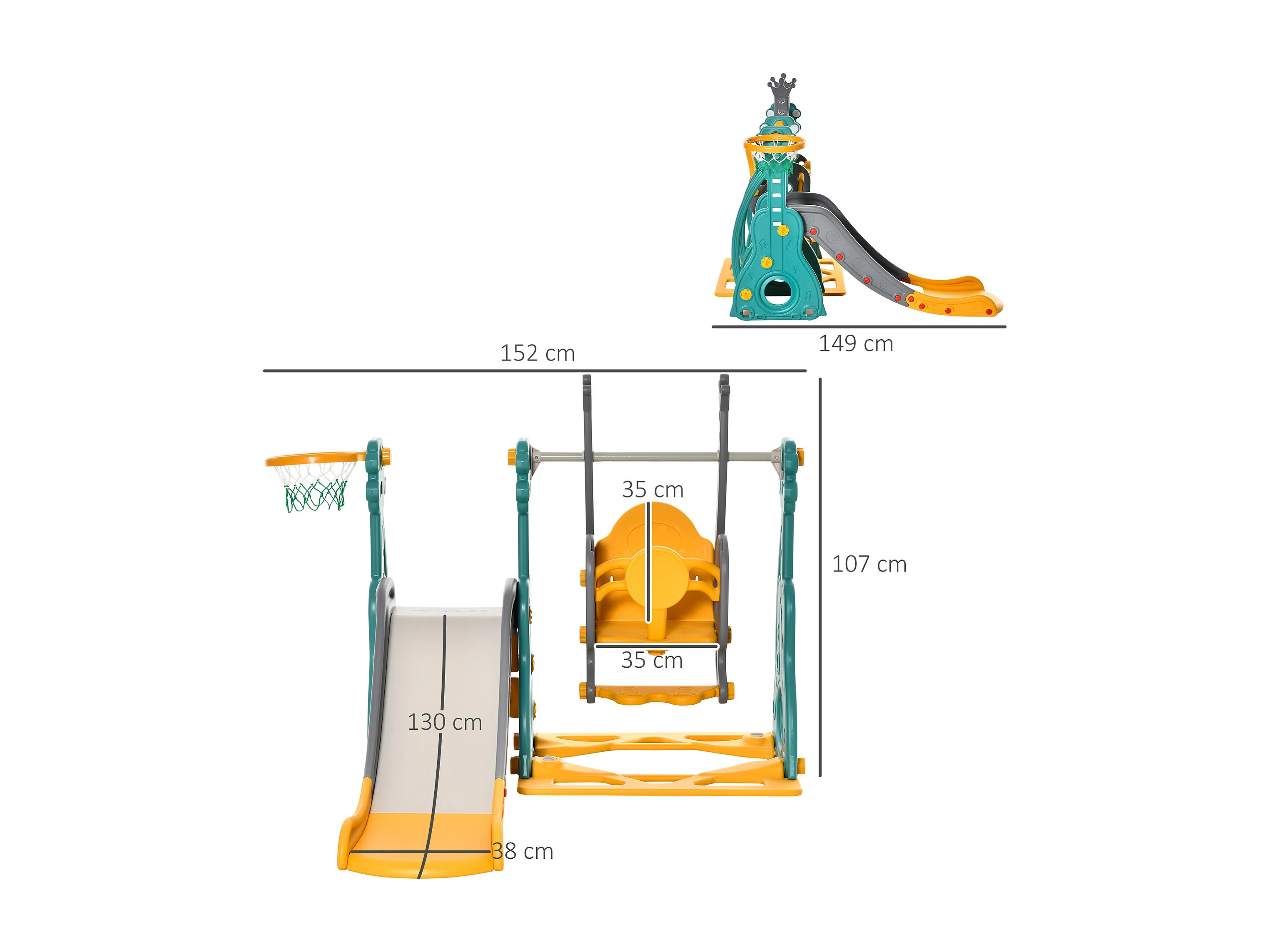 Scivolo per bambini altalena canestro multicolore 152x149x107cm
