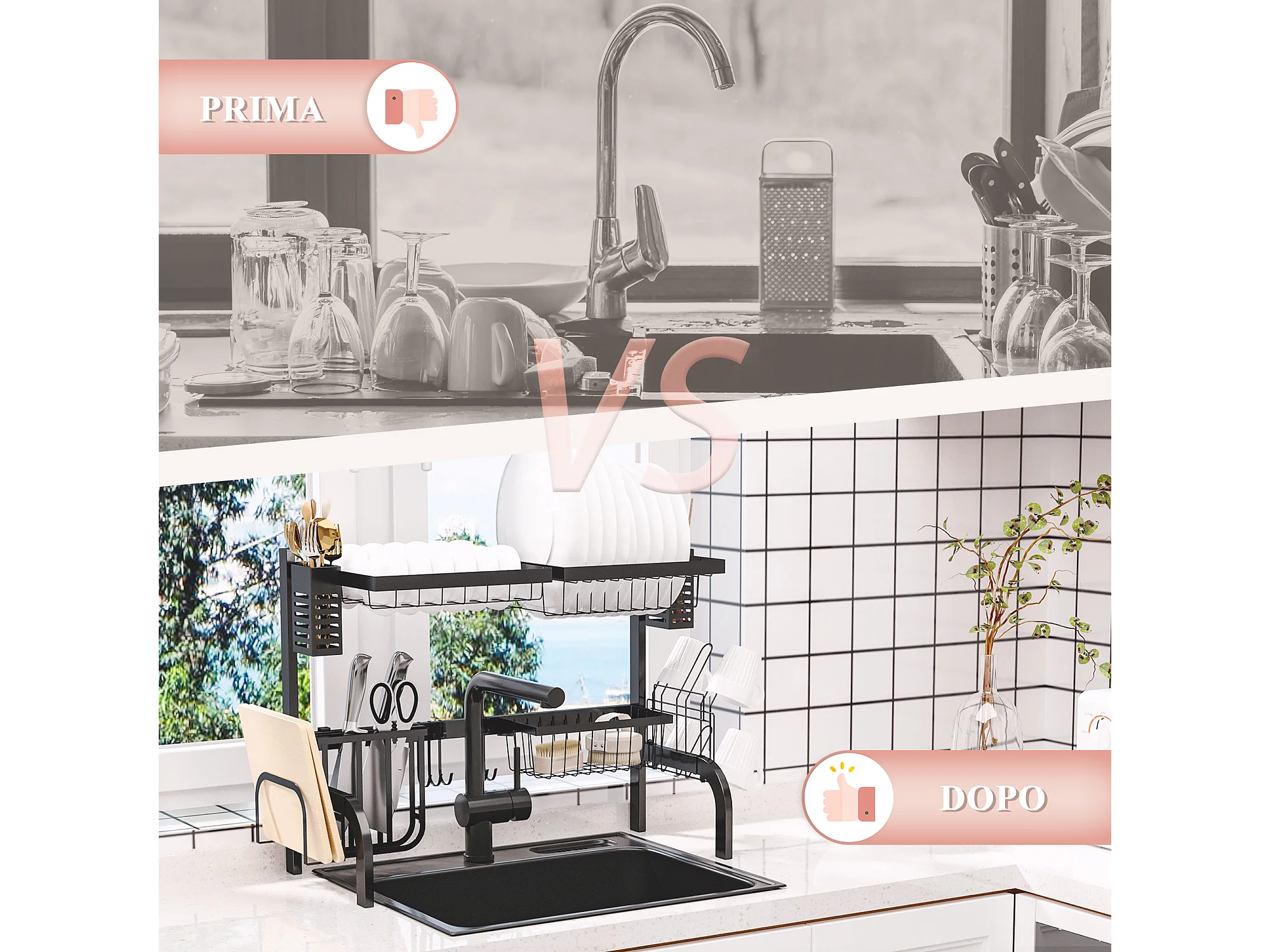 Scolapiatti da lavello modulabile a 2 livelli con piedini antiscivolo