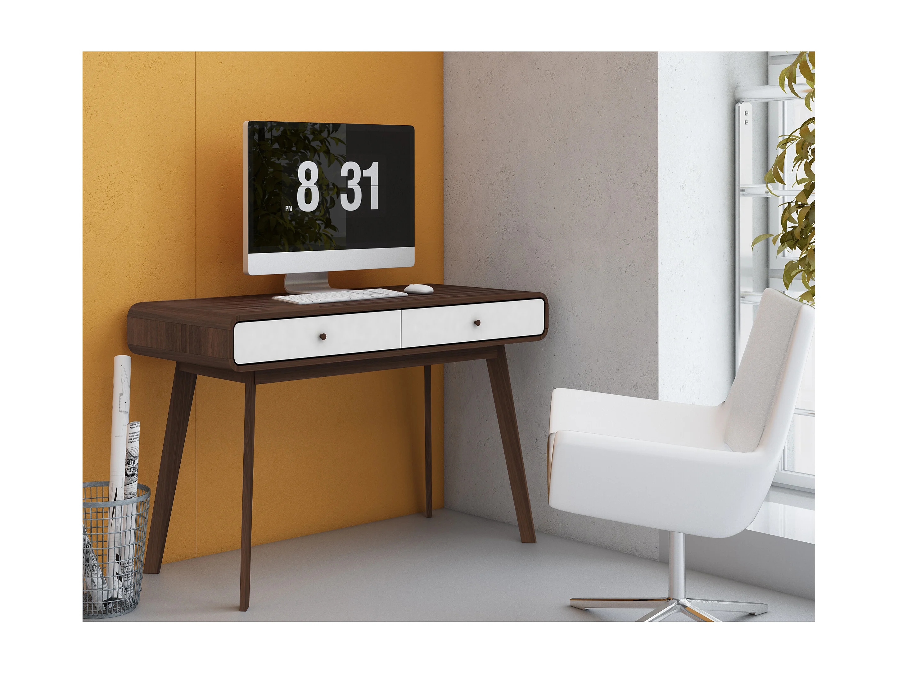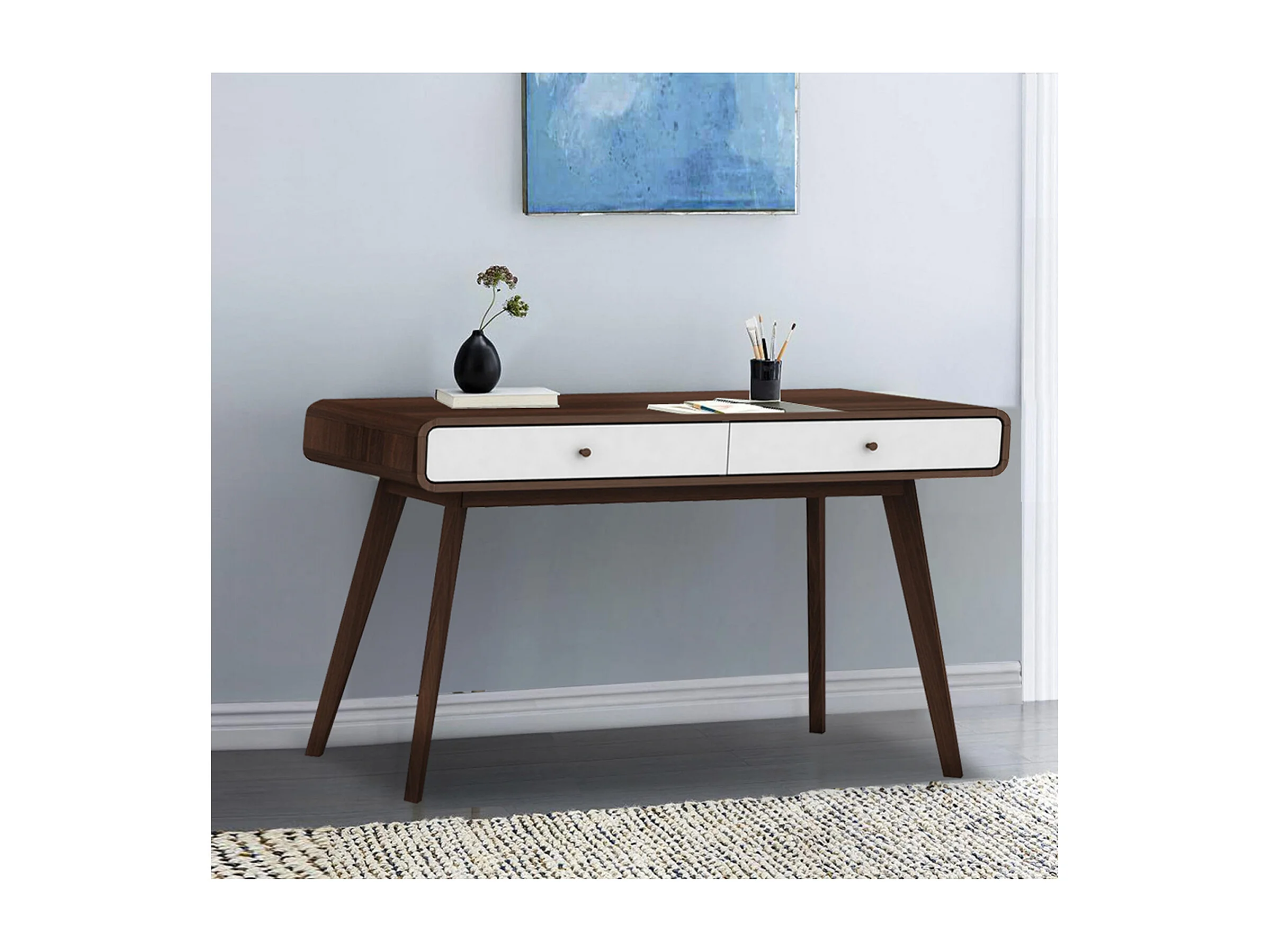 Scrittoio a 2 ante in agglomerato noce e bianco