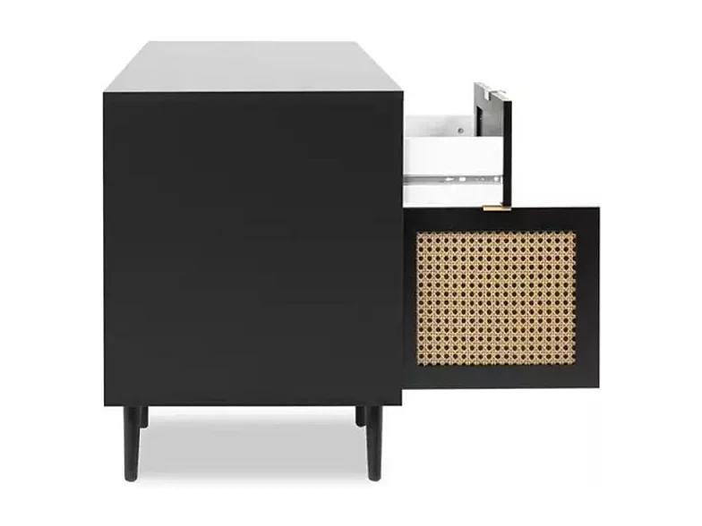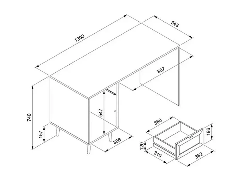 Scrivania 1 anta 1 cassetto, stampa impagliatura e nera - L130 cm