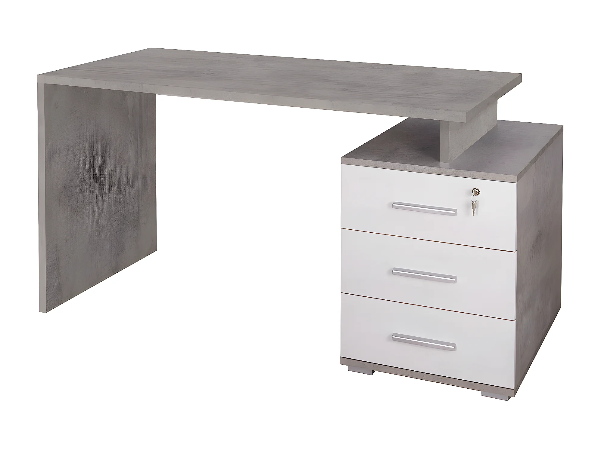 Scrivania 3 cassetti l154 in kit in truciolare nobilitato color cemento e ossido bianco