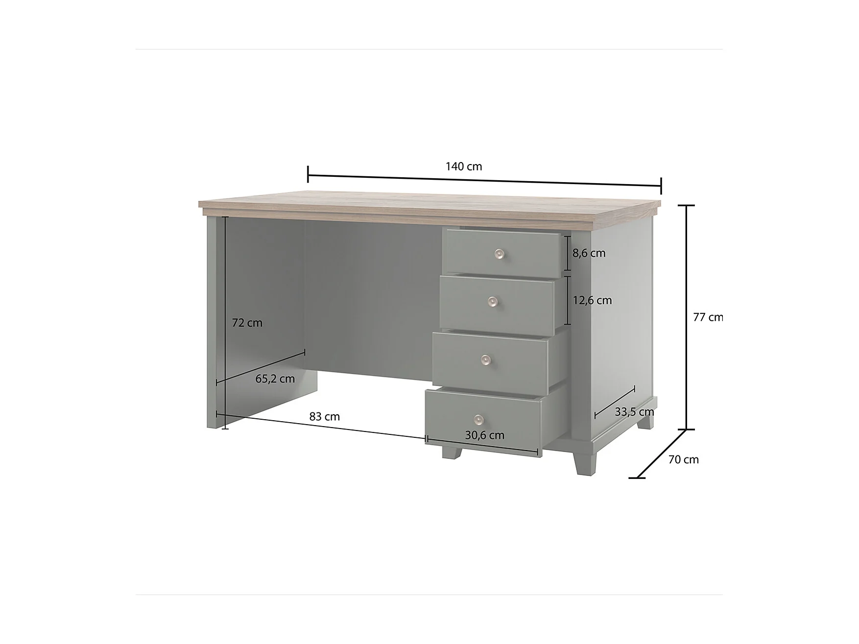 Scrivania 4 cassetti Martin verde e marrone 77cm