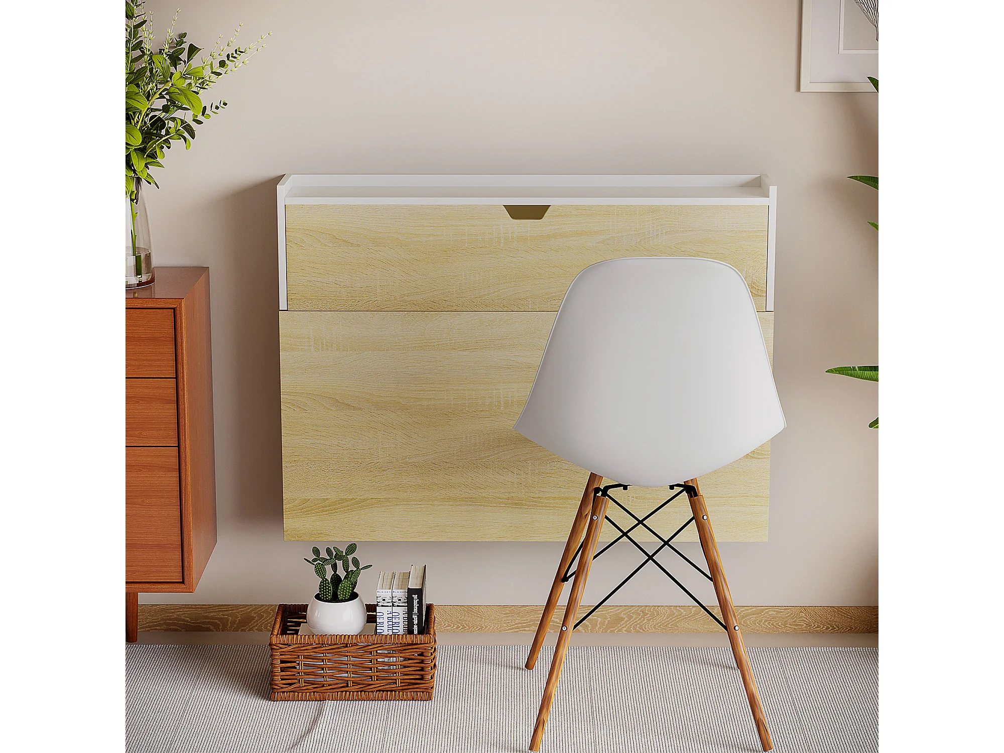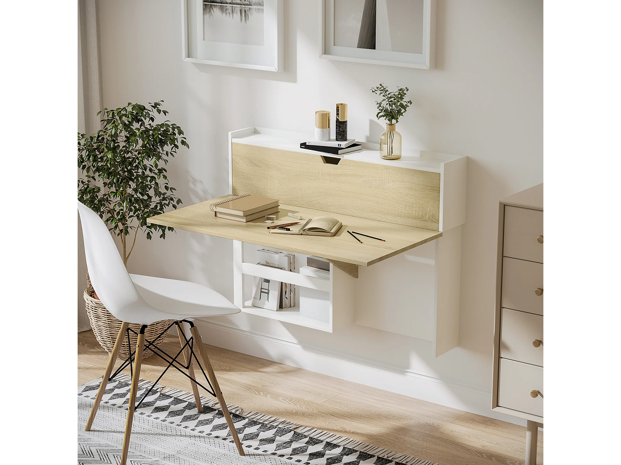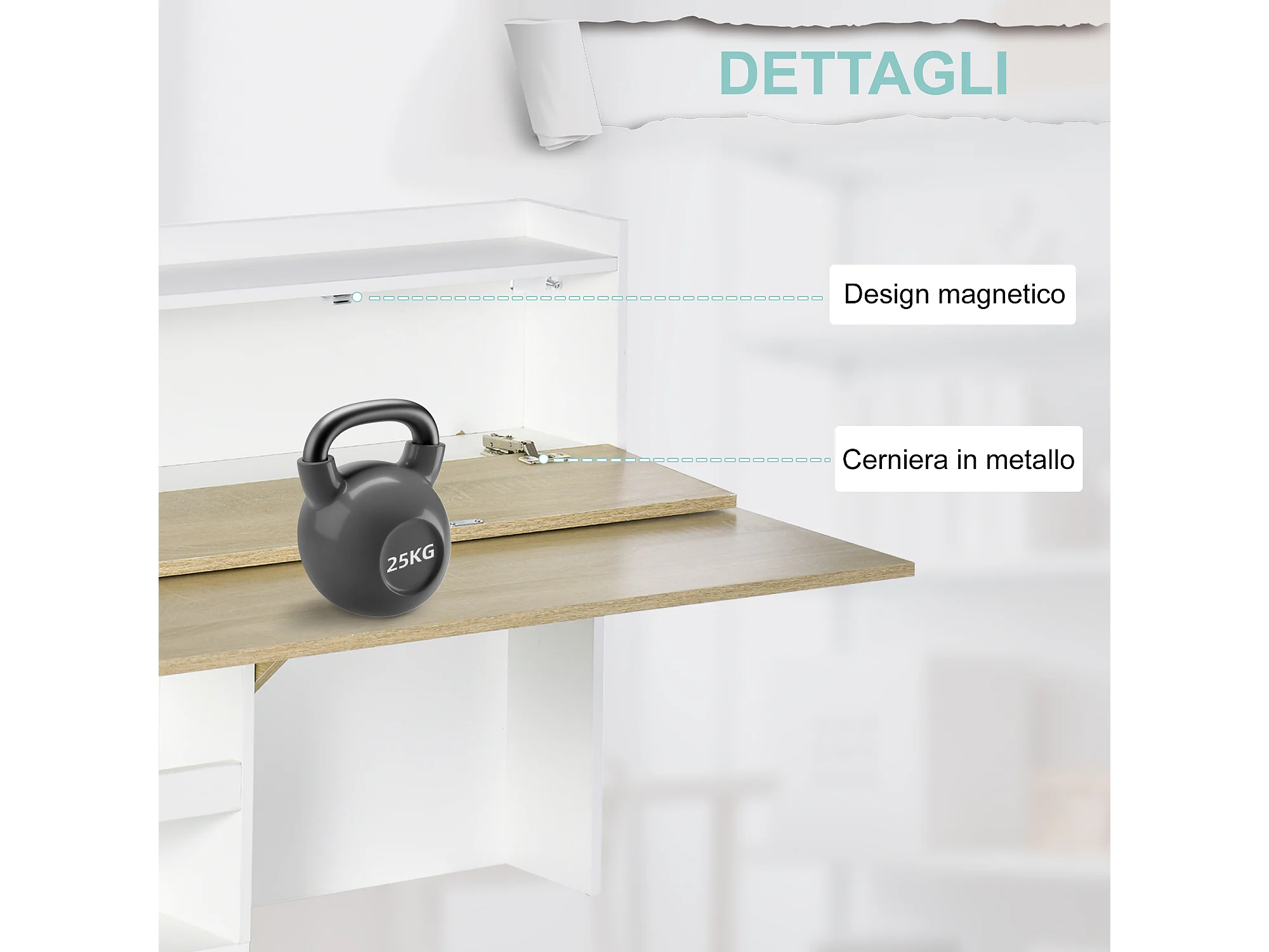 Scrivania a muro pieghevole con ripiani per casa e ufficio