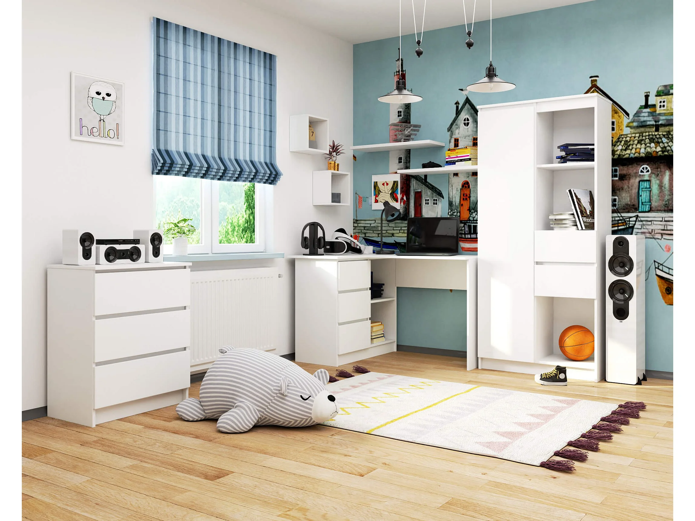Scrivania angolare AKORD B16 Bianco 124 cm 3 cassetti 124x85x77 cm Modello a sinistra