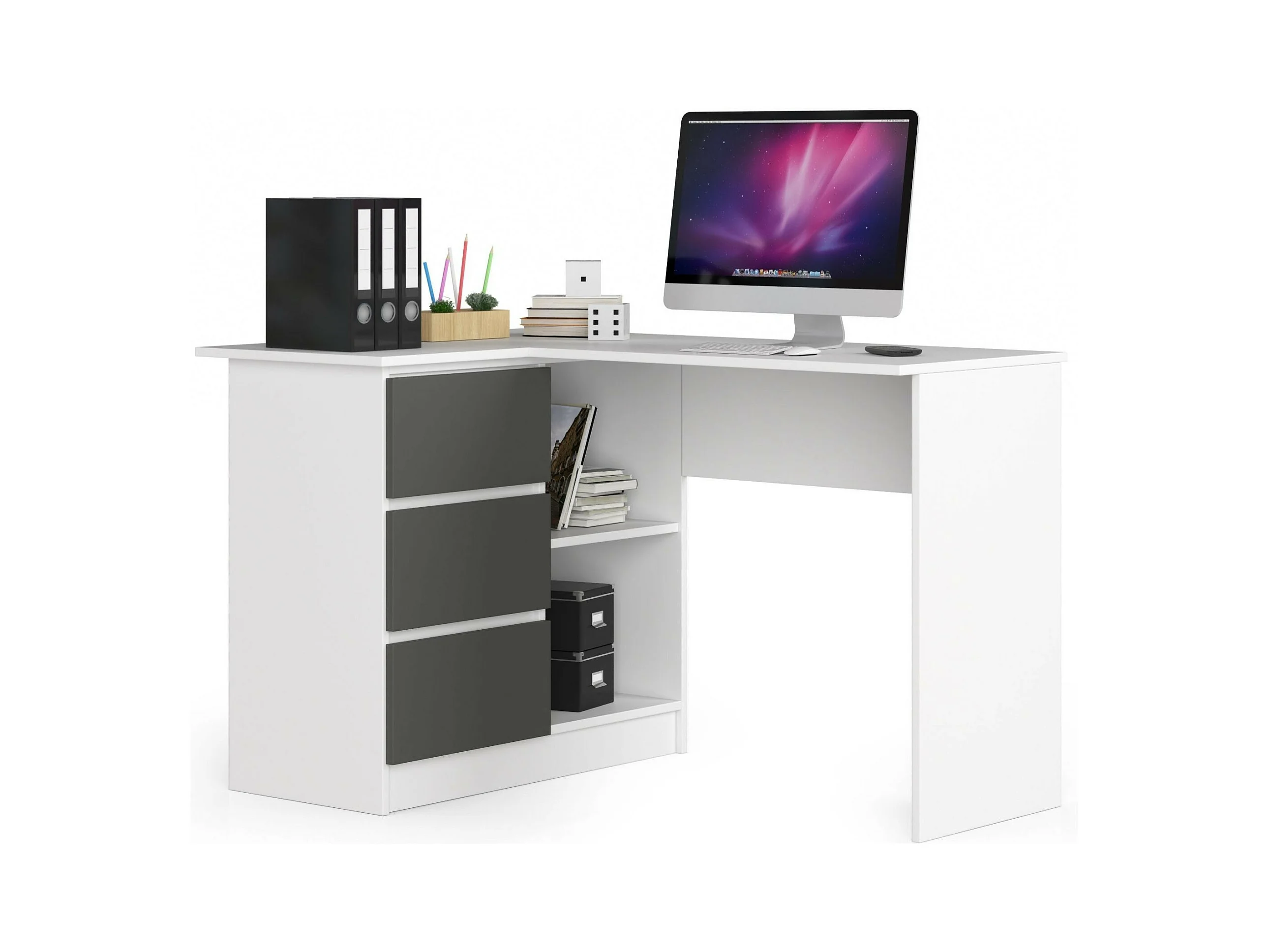 Scrivania angolare AKORD B16 Bianco 124 cm 3 cassetti inserto frontale Grigio Grafite 124x85x77 cm Modello a sinistra