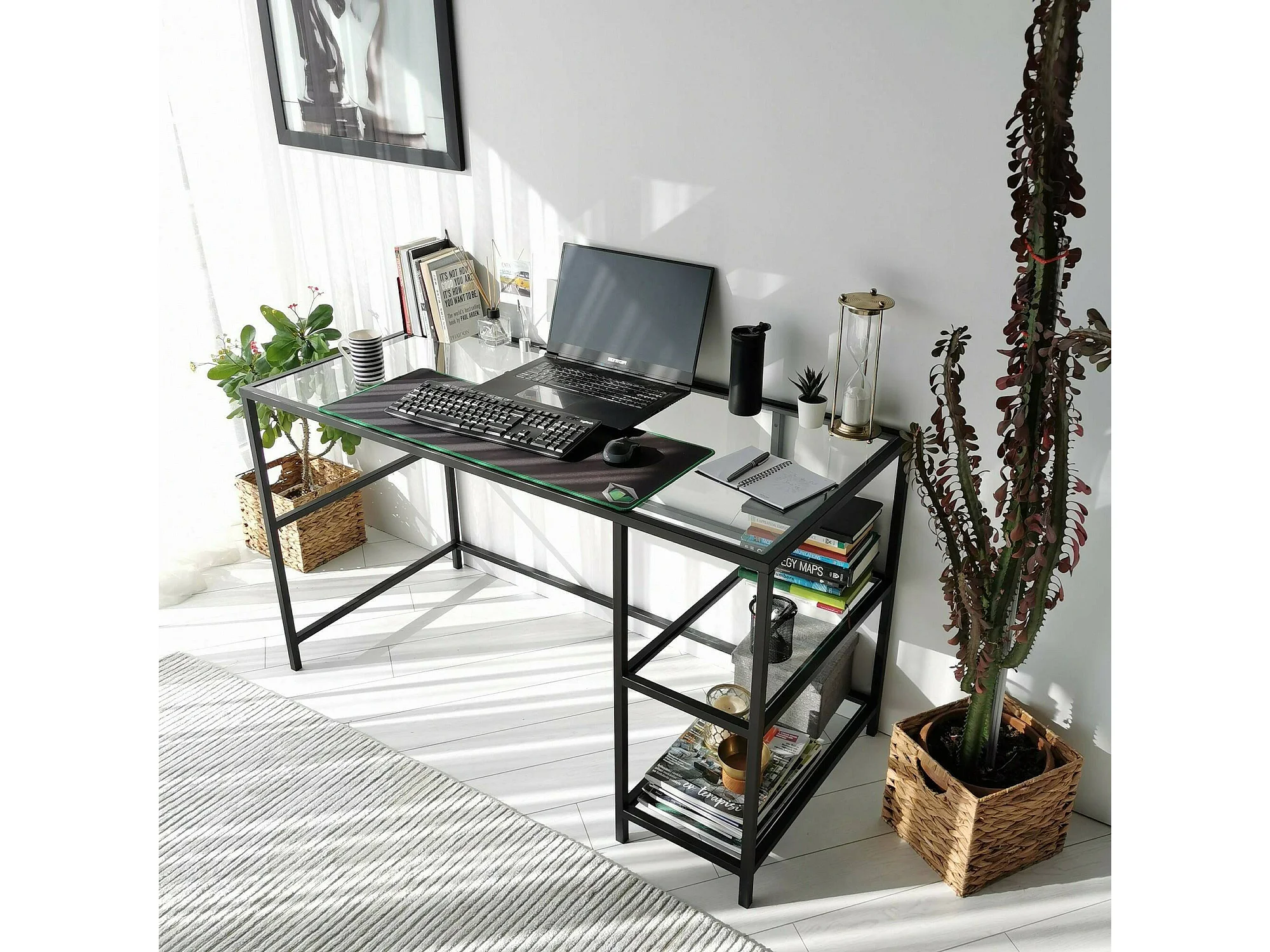 Scrivania Ameglia, 2 Ripiani, 60x130x75h cm Nero