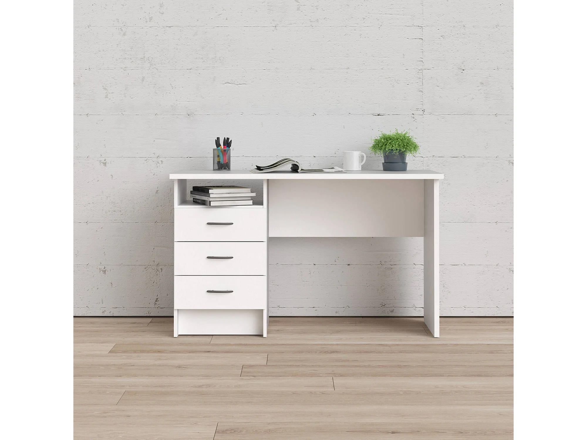 Scrivania Andre, 3 Cassetti, 48.1x120.1x72.6h cm Bianco