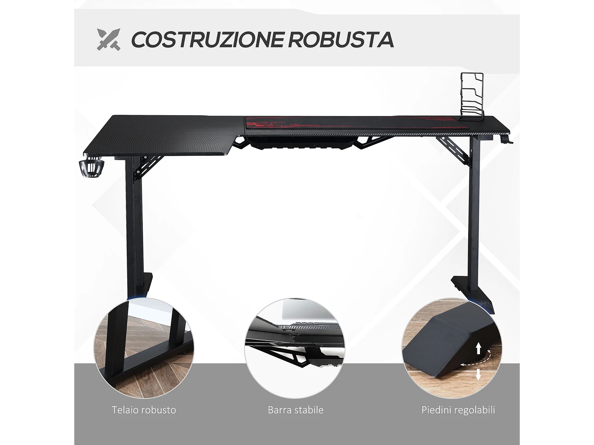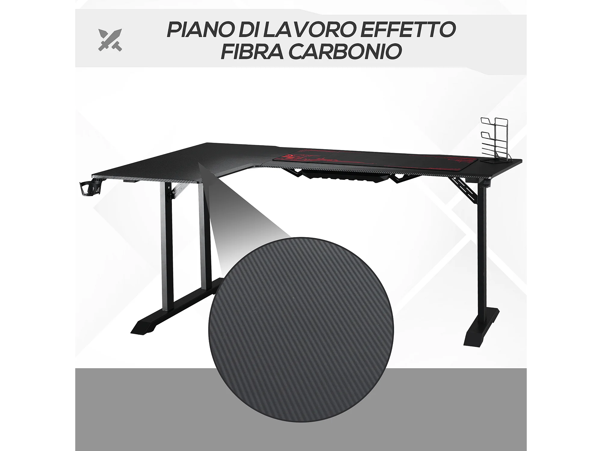 Scrivania angolare da gaming gancio per cuffie e porta tazza