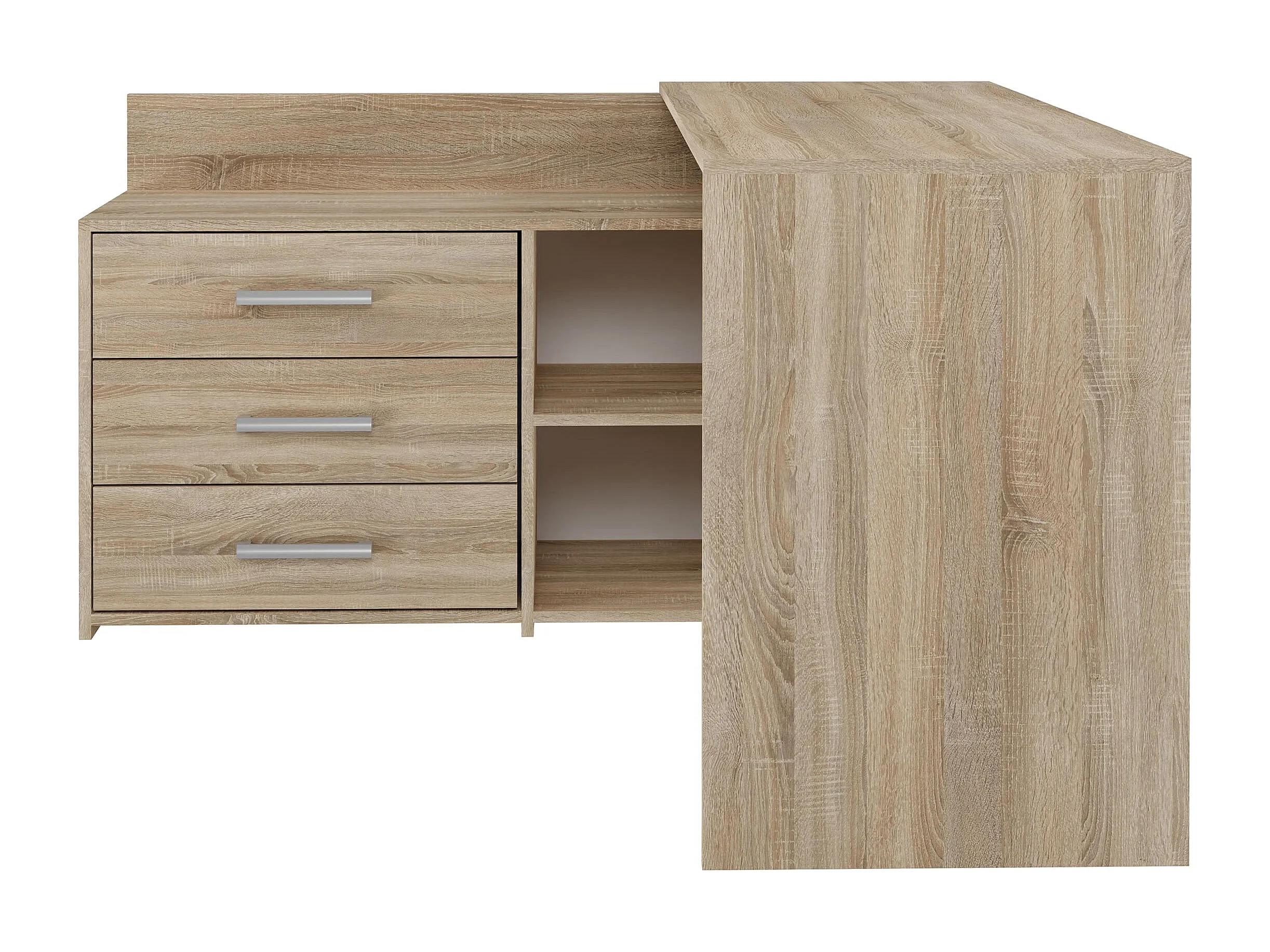 Scrivania angolare AKORD B20 Sonoma Quercia 155 cm 1 anta 3 cassetti inserto frontale Bianco 155x85x77 cm Modello a sinistra