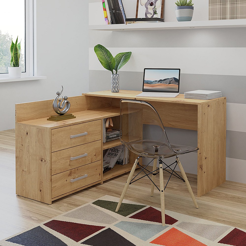 Scrivania angolare AKORD B16 Ontano 124 cm 3 cassetti 124x85x77 cm Modello a destra
