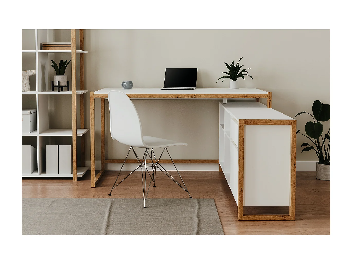 Scrivania angolare reversibile New Denver37A colore bianco e rovere