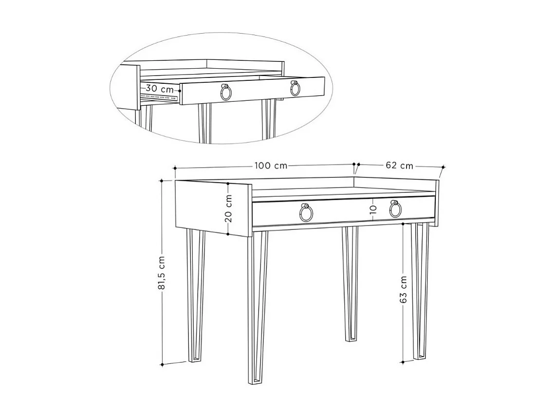 Scrivania bianca con gambe in metallo nero e cassetto Sponge 100x62x81,5