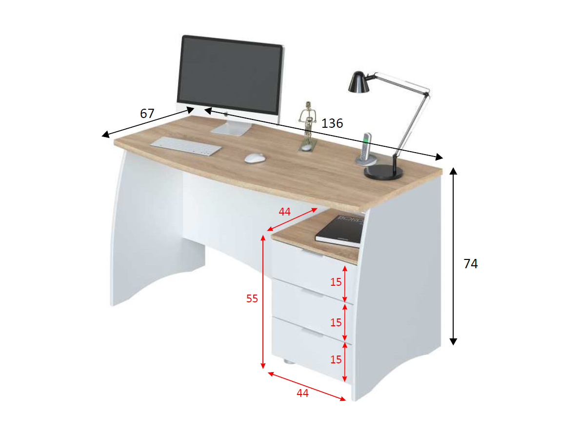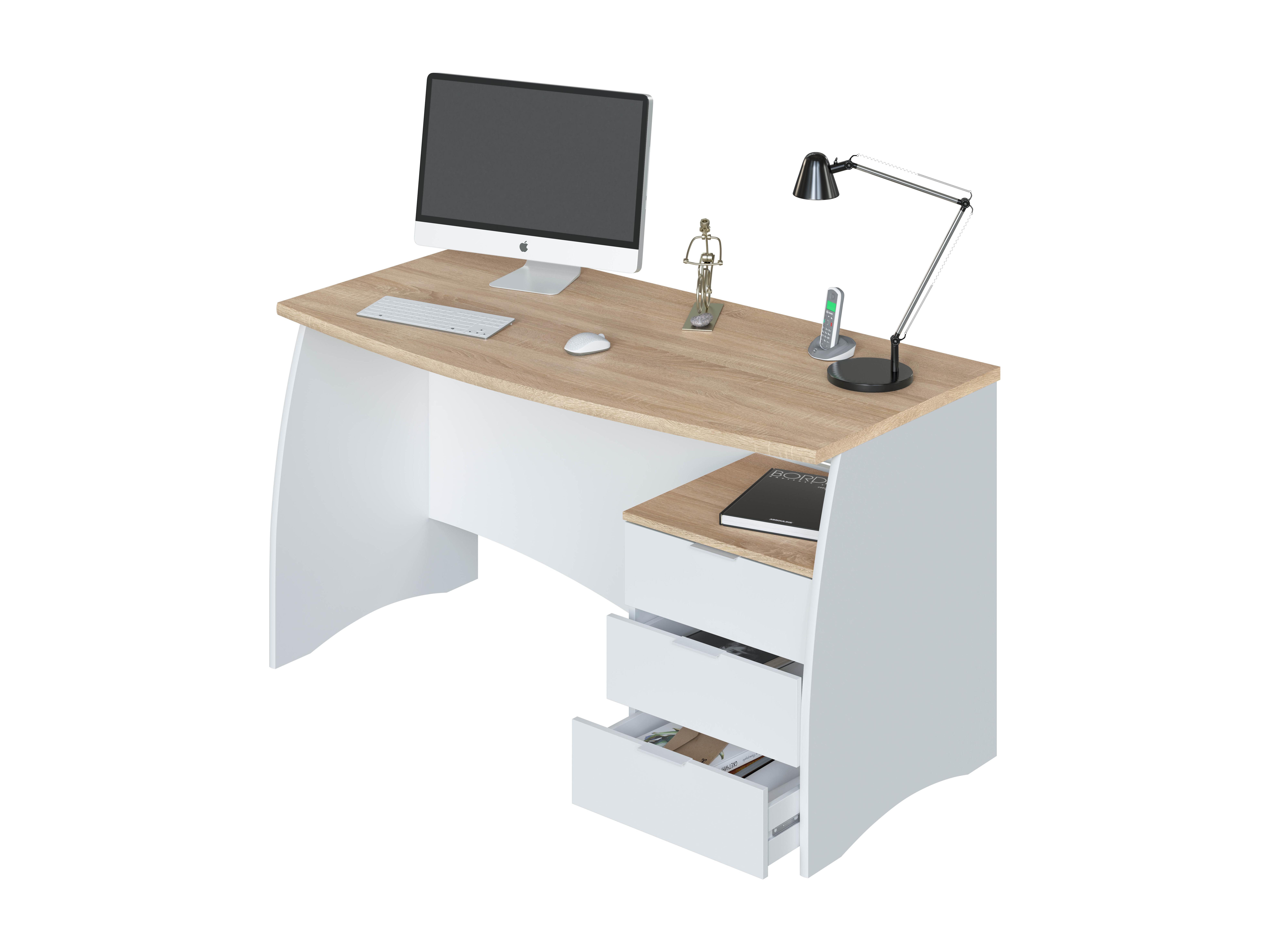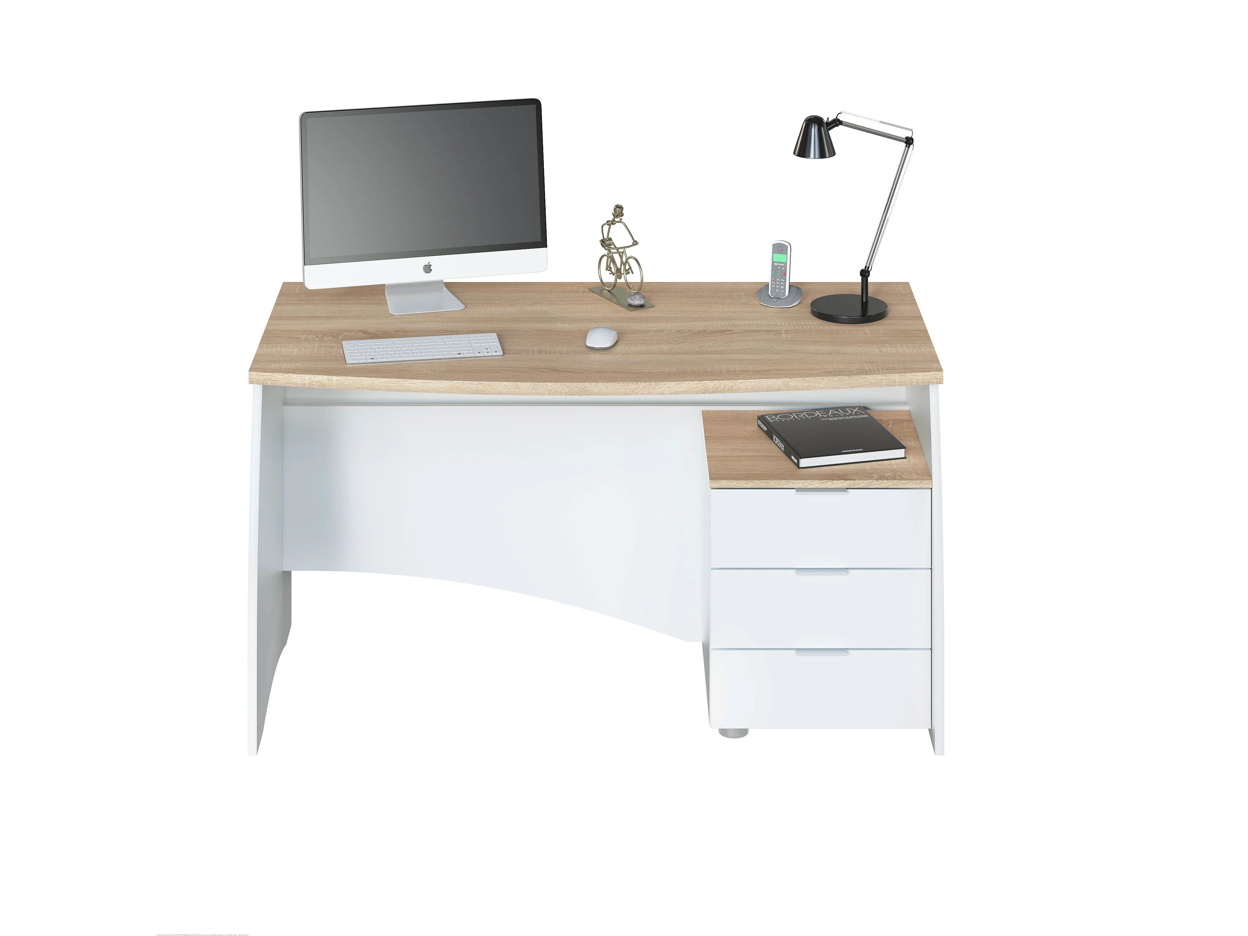 Scrivania con 3 Cassetti Bliss Scrittoio da Studio o Ufficio Mobile Desk da Soggiorno Sala da Pranzo 136 x 74 x 67 cm Colore Bianco e Rovere
