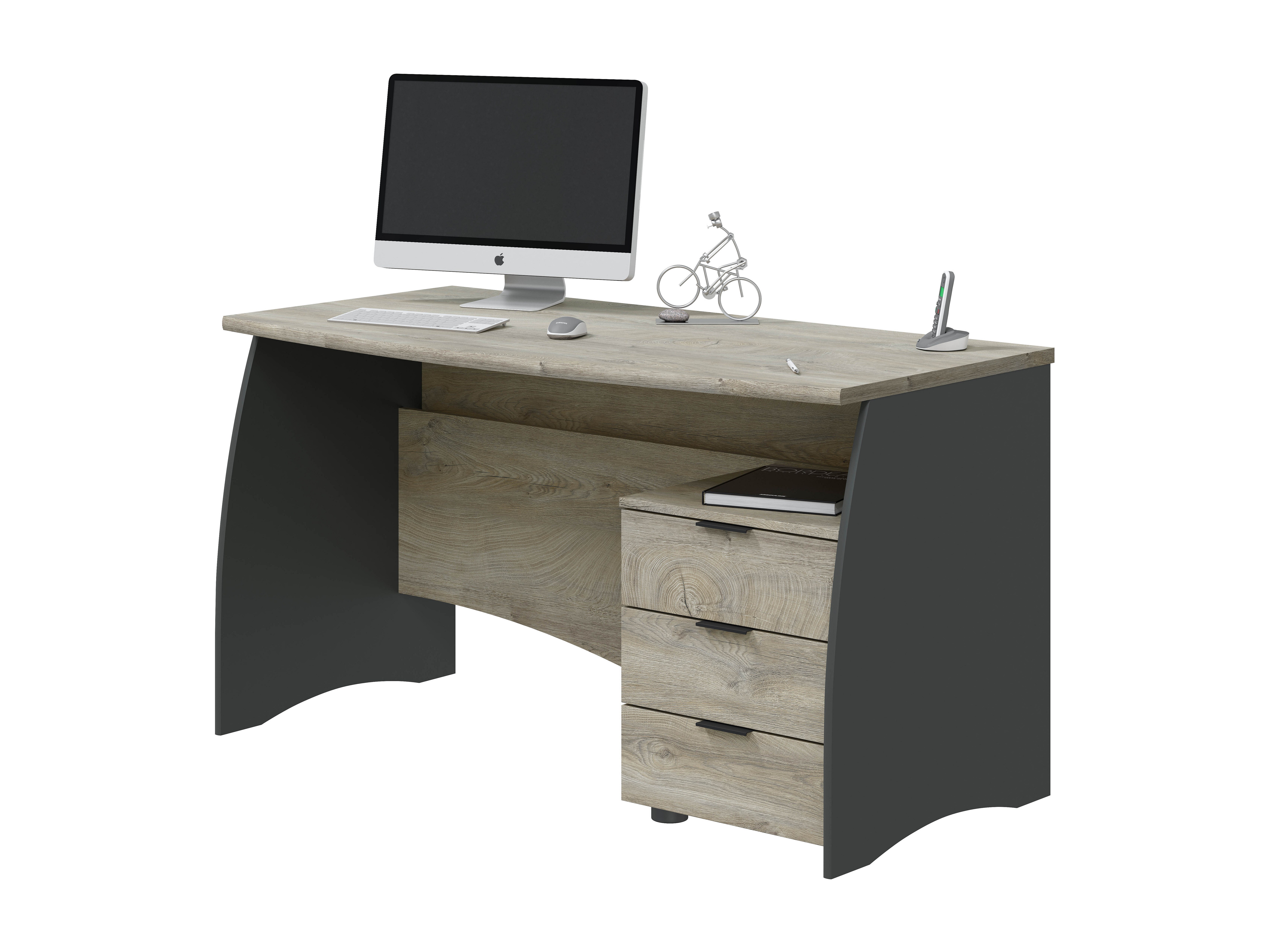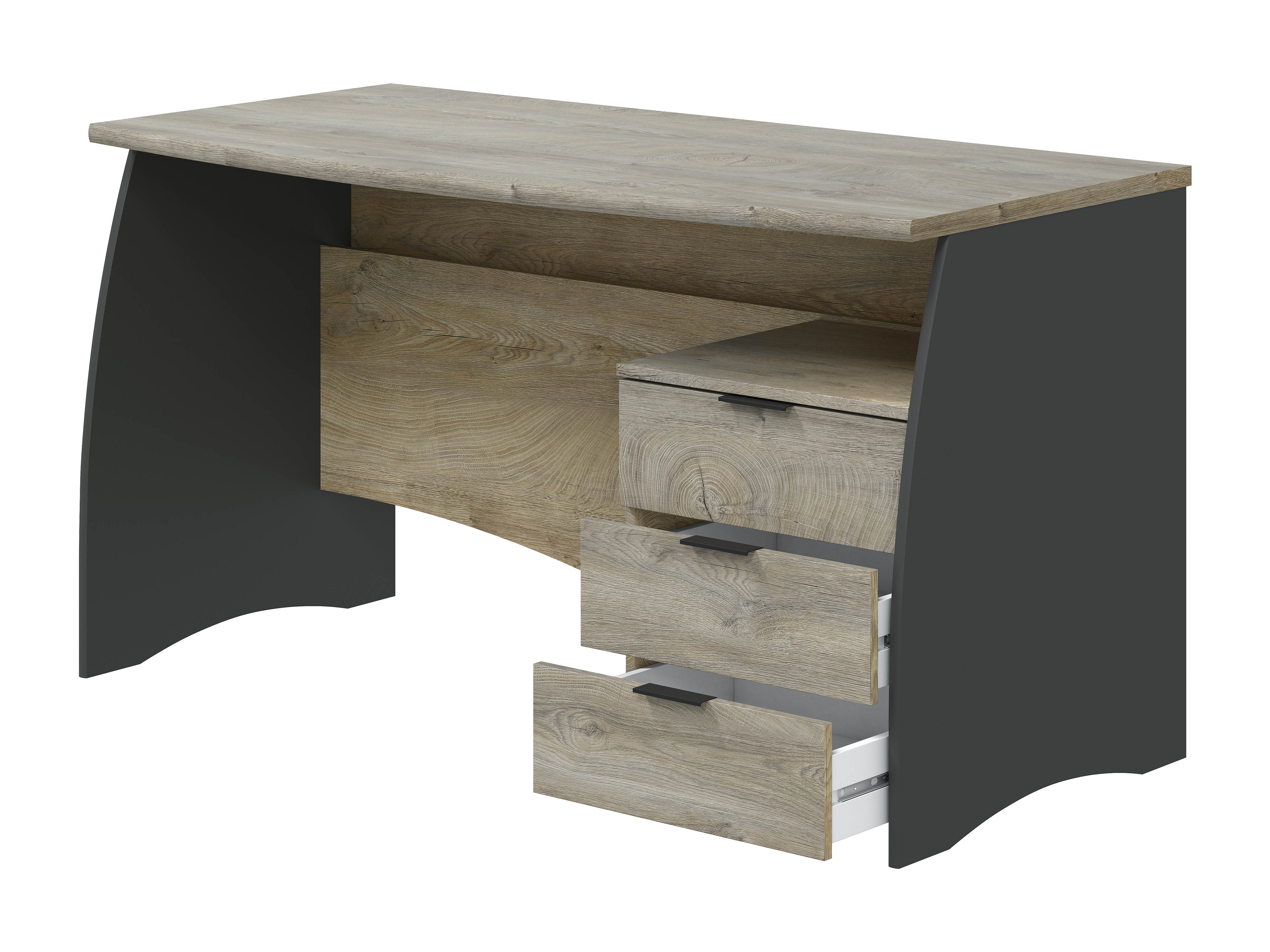 Scrivania con 3 Cassetti Bliss Scrittoio da Studio o Ufficio Mobile Desk da Soggiorno Sala da Pranzo 136 x 74 x 67 cm Colore Rovere E Grigio