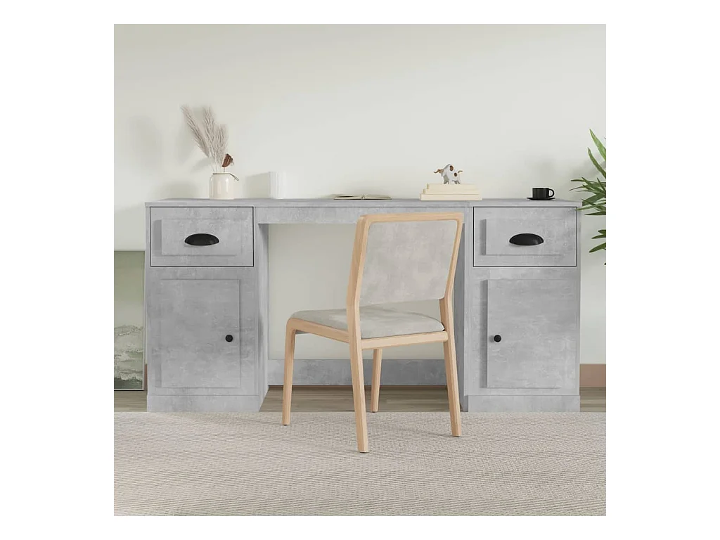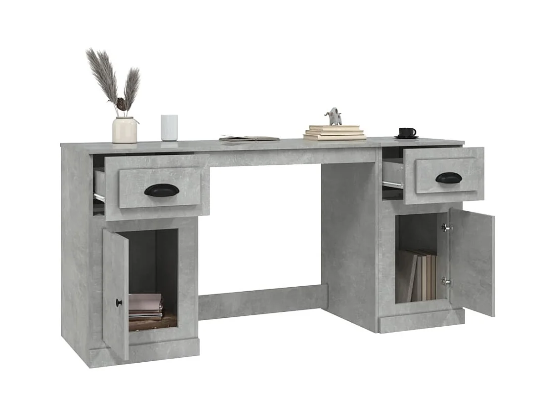 Scrivania con Mobile Laterale Grigio Cemento Legno Multistrato
