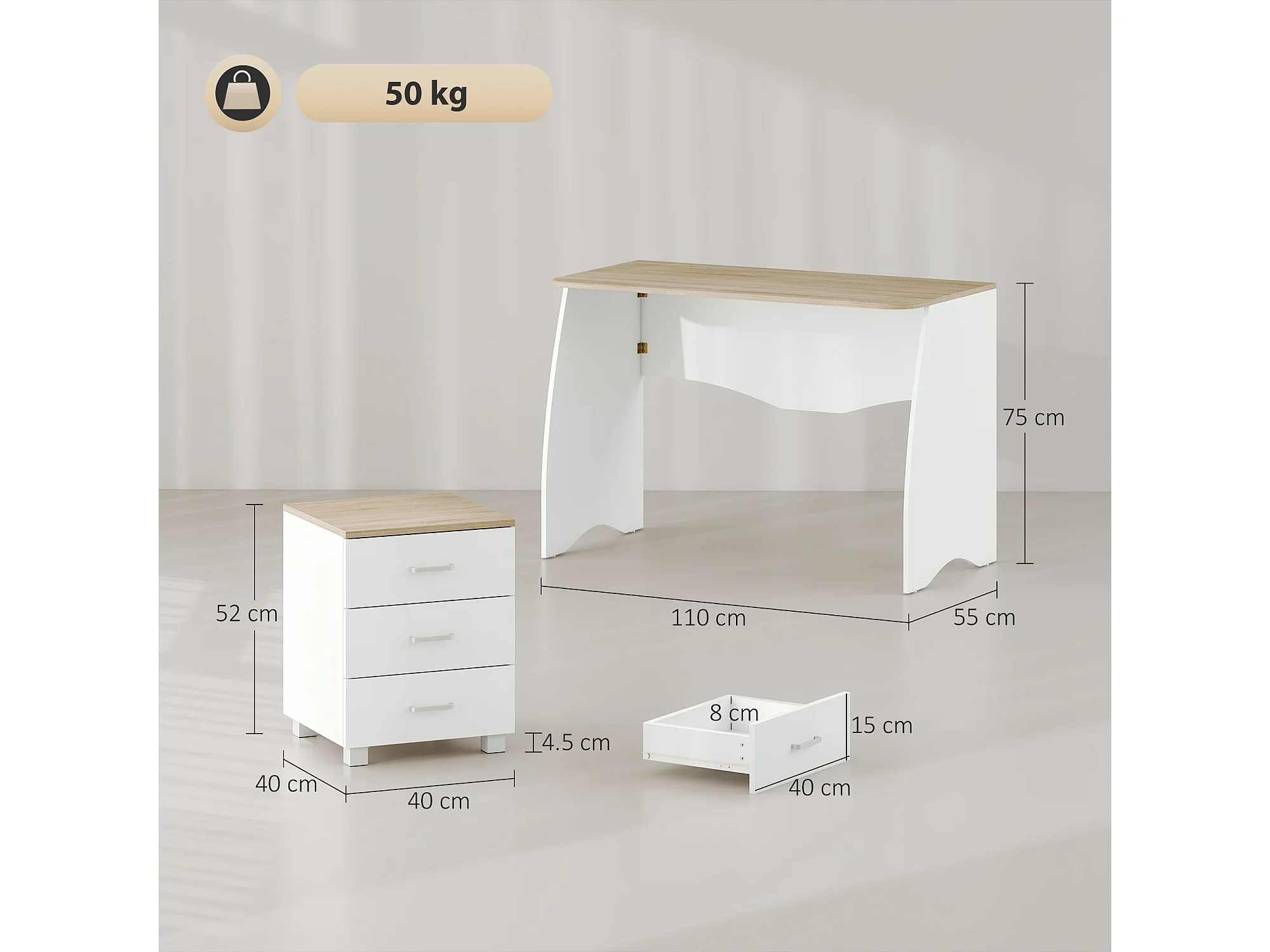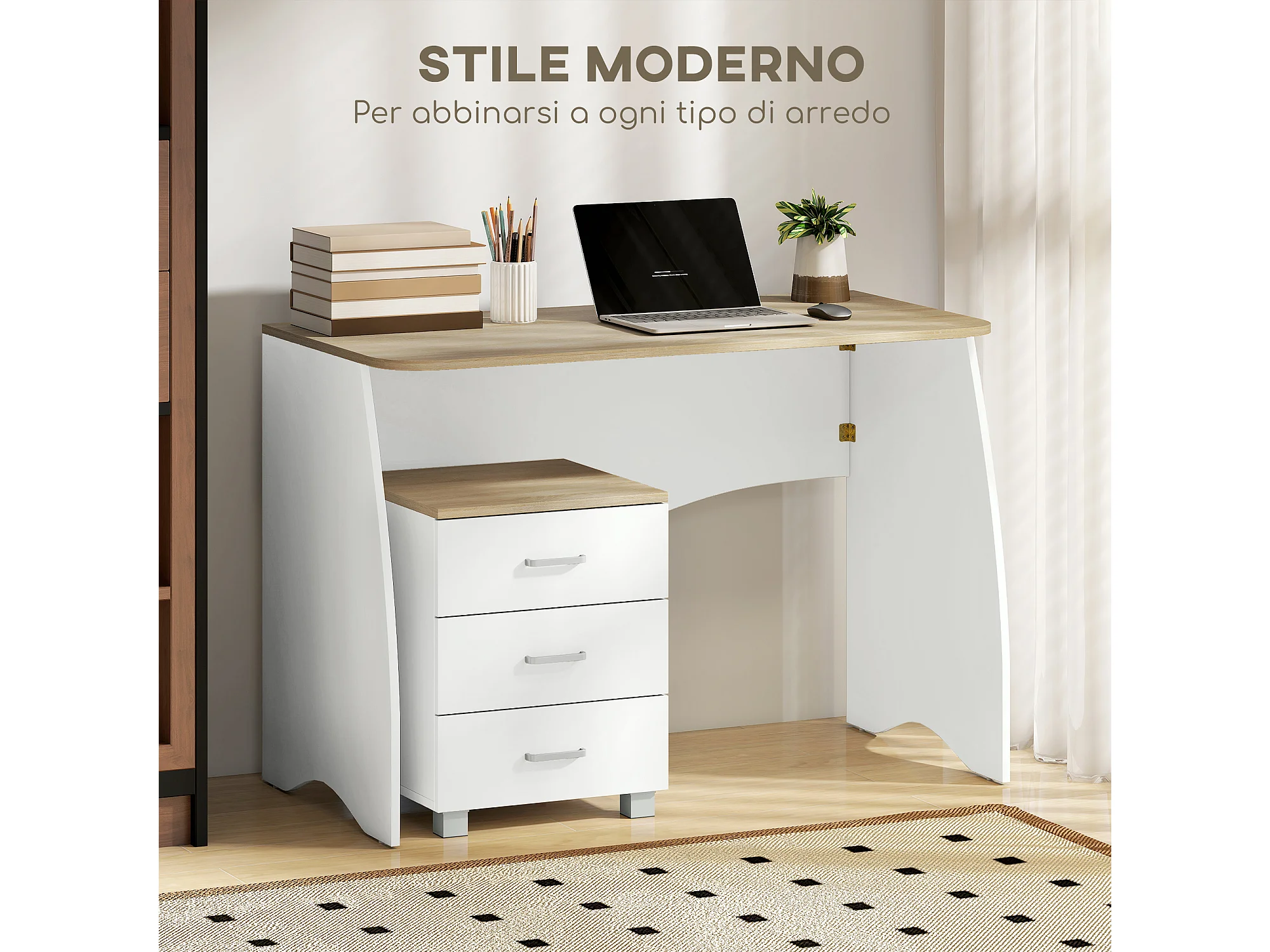 Scrivania con cassettiera moderna in legno per camera e ufficio