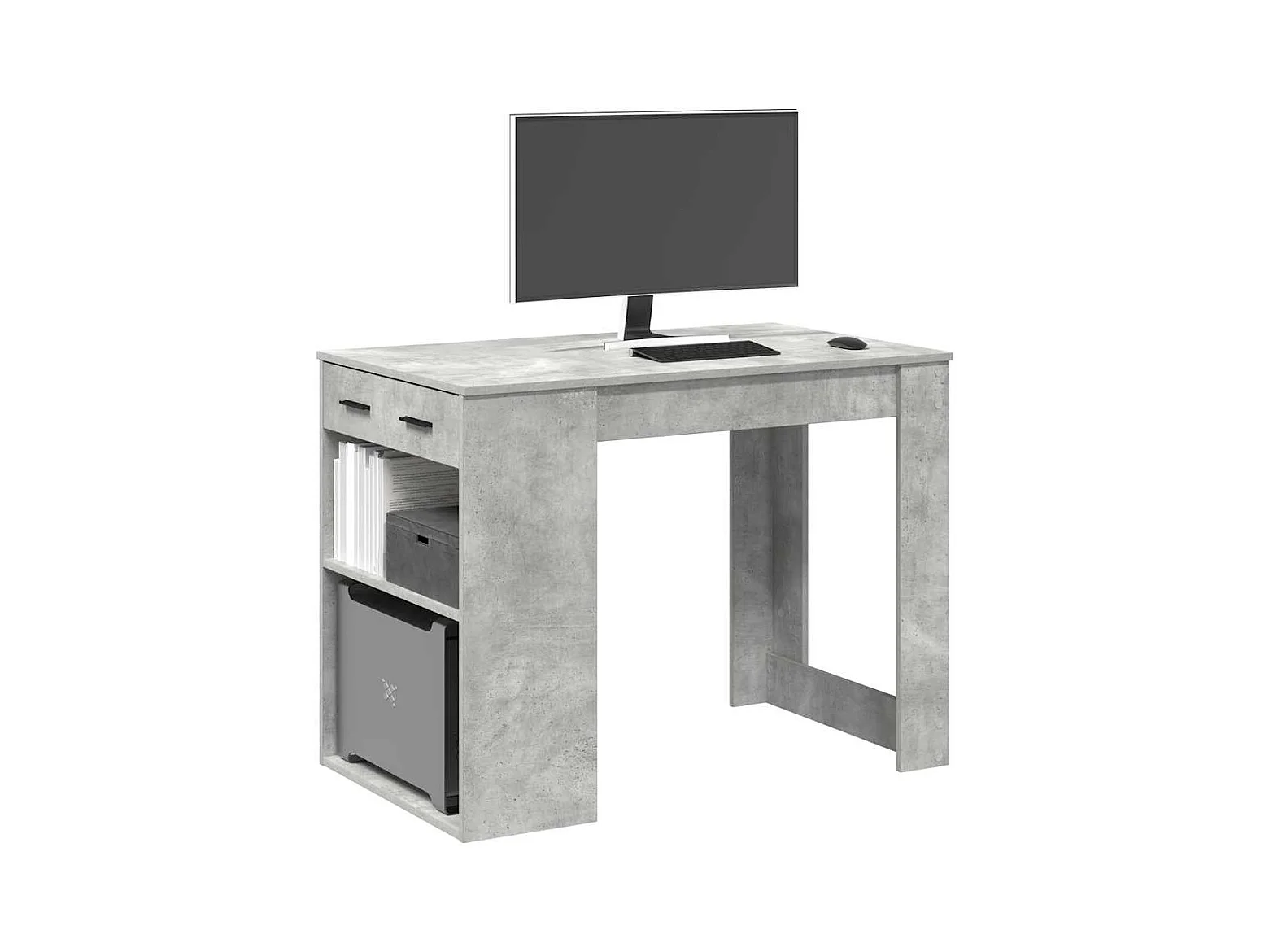 Scrivania con Cassetto Ripiano Grigio Cemento Legno Multistrato