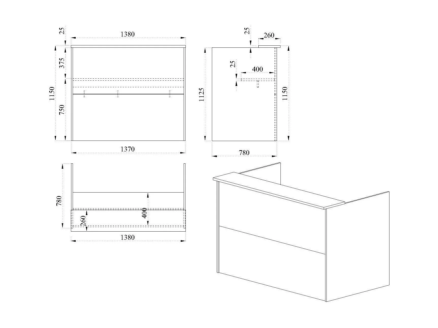 Scrivania per segretaria antracite/quercia dorata 85x28.6x128.5 alena