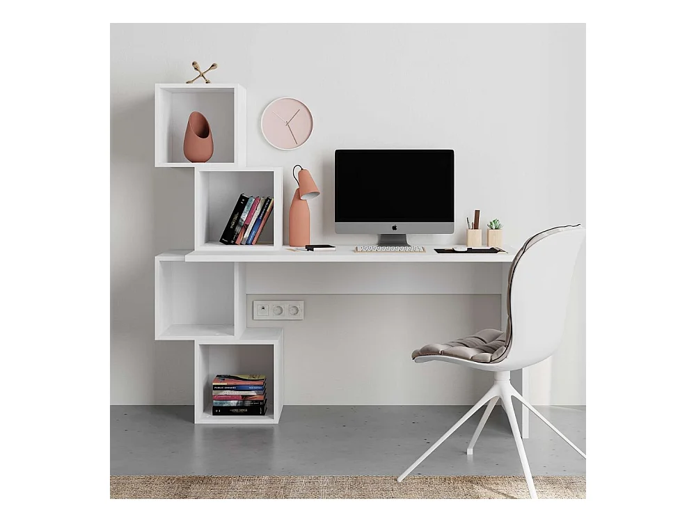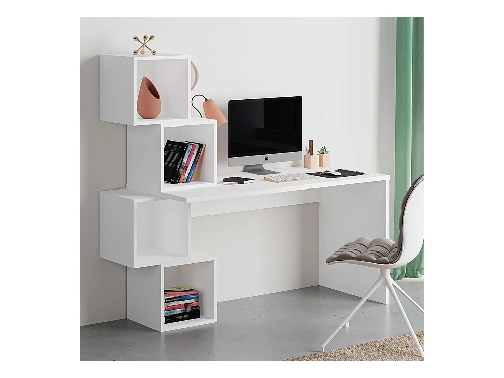 Scrivania con libreria Balance 153,5x60x140 colore bianco