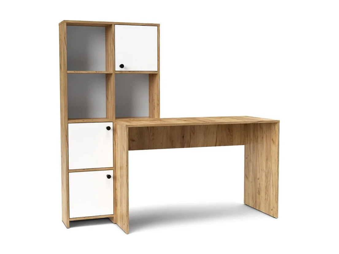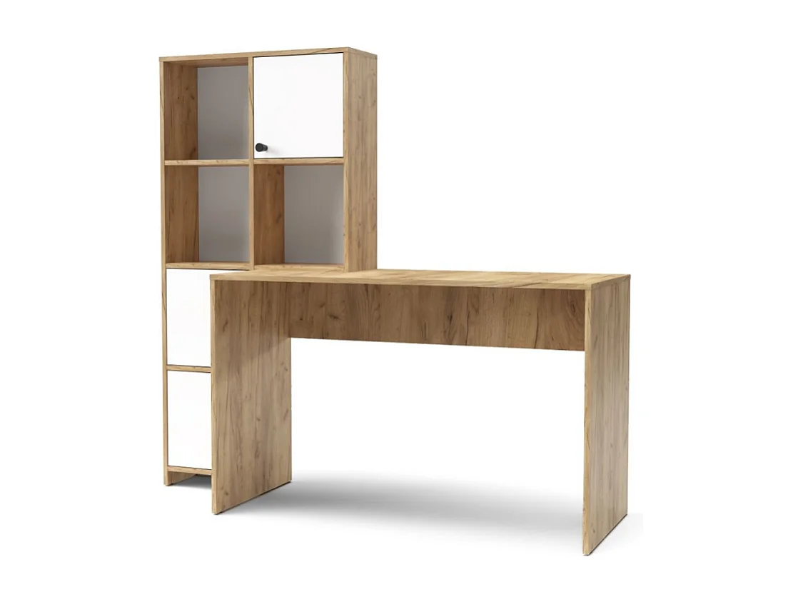 Scrivania con Libreria Halk 156 colore rovere bianco