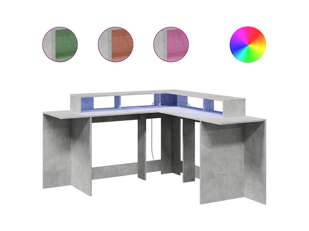 Scrivania con Luci LED Grigio Cemento 130x130x91 cm Multistrato