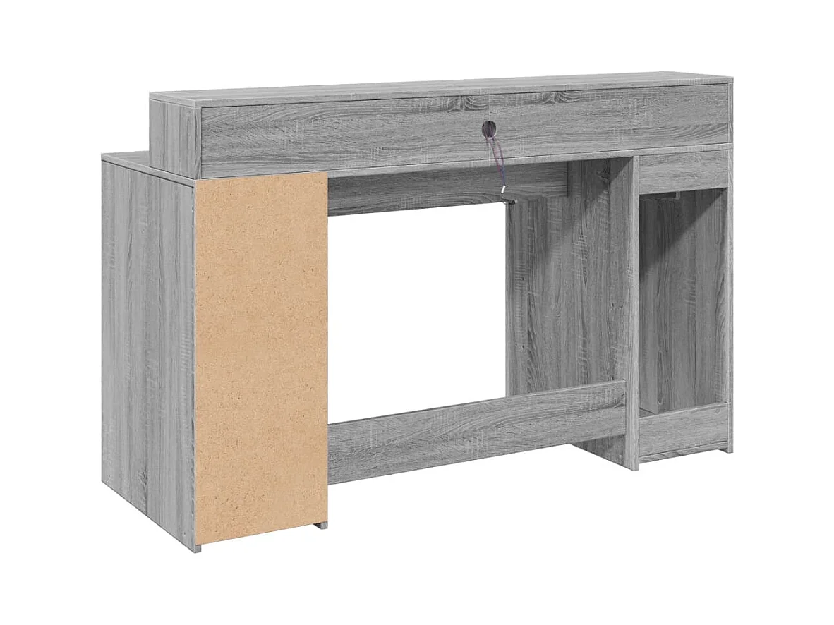 Scrivania con Luci LED Grigio Sonoma 140x55x91cm in Multistrato