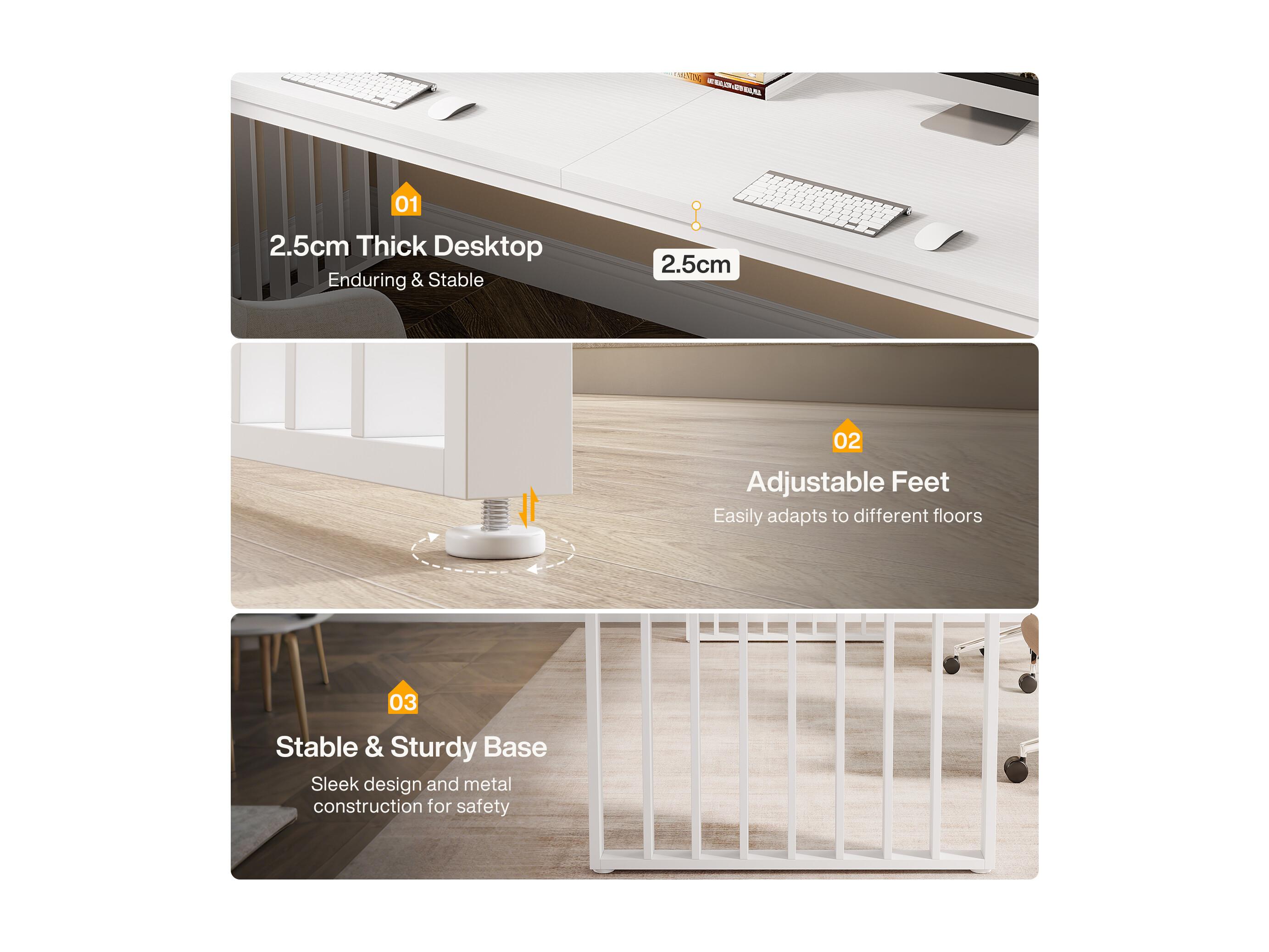Scrivania per computer - 140 x 80 x 75 cm - Tavolo per computer - Tavolo da ufficio - Tavolo da lavoro - Tavolo da ufficio - Bianco e oro