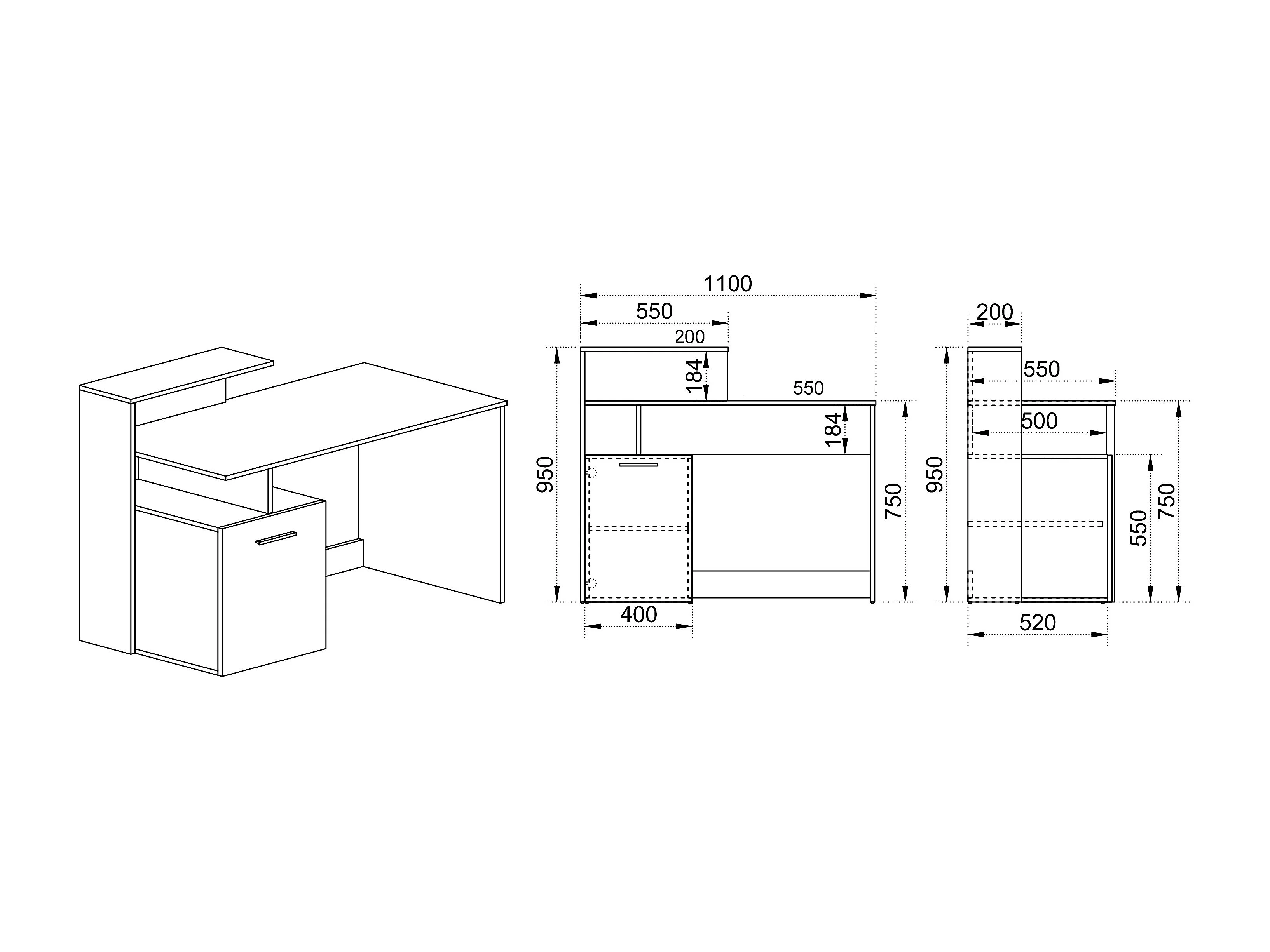 Scrivania ad angolo con anta e cassetto in rovere SCG4