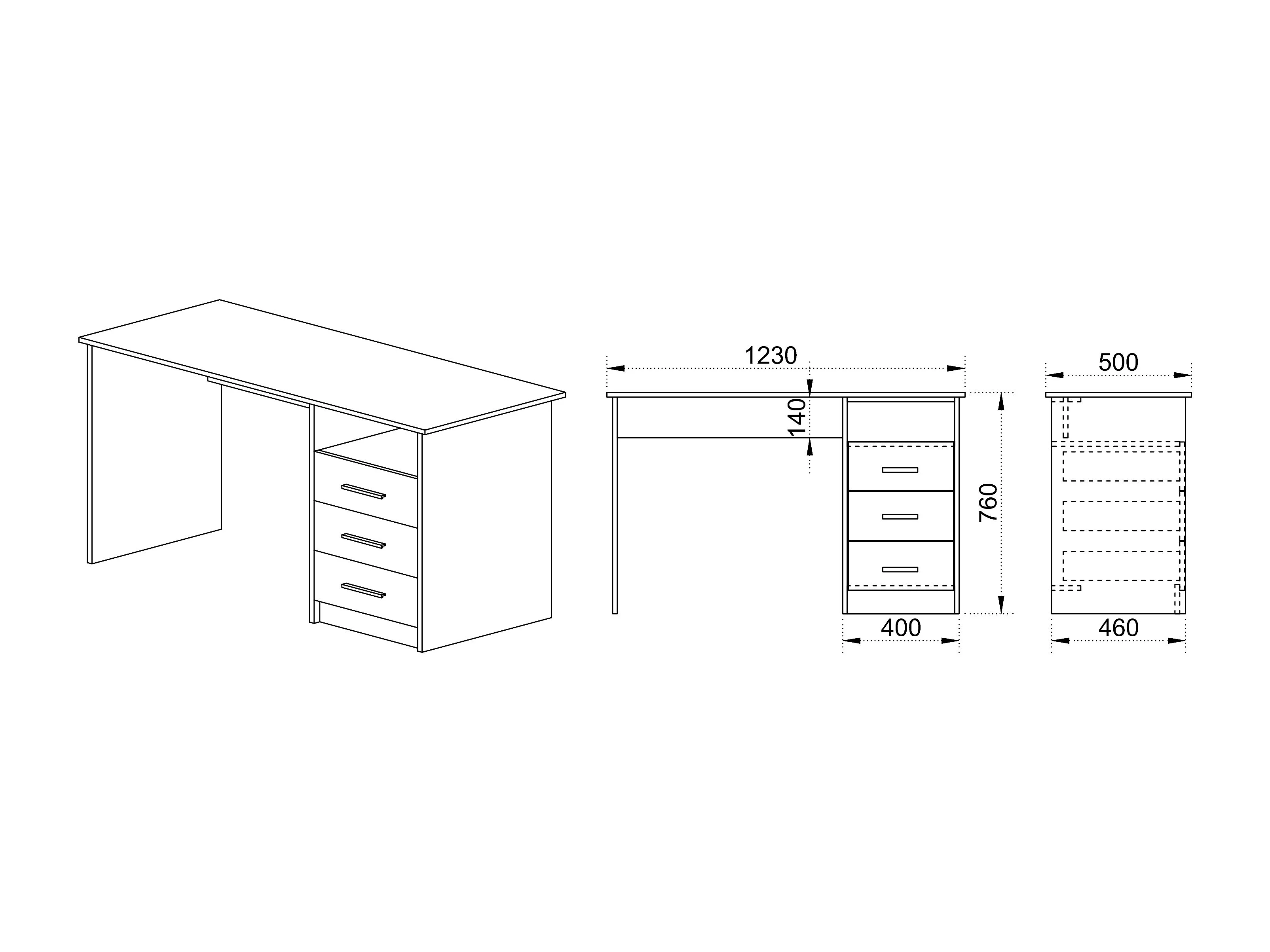 Scrivania da camera moderna con tre cassetti 123x76 rovere naturale SCI13