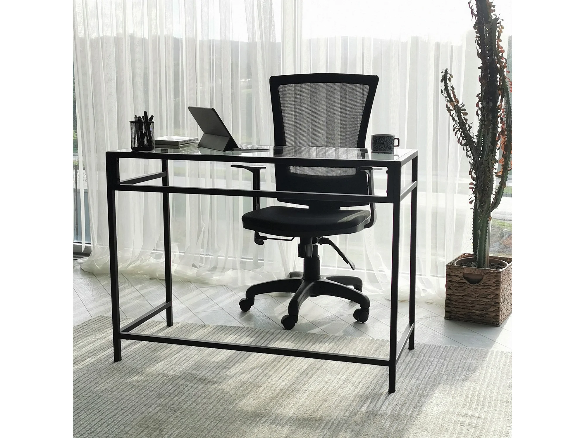 Scrivania da ufficio Asheboro 128, 75x100x45cm, Nero