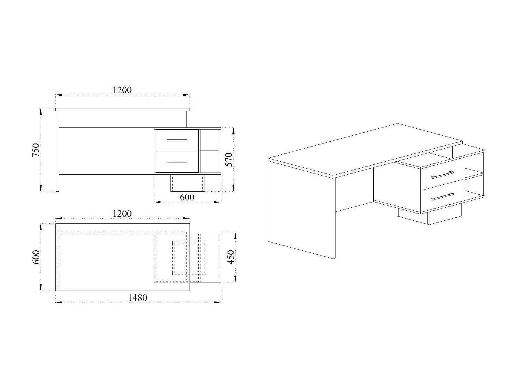 Scrivania da ufficio con ripiano e due cassetti effetto legno 148x75 rovere e grigio lucido SUI5
